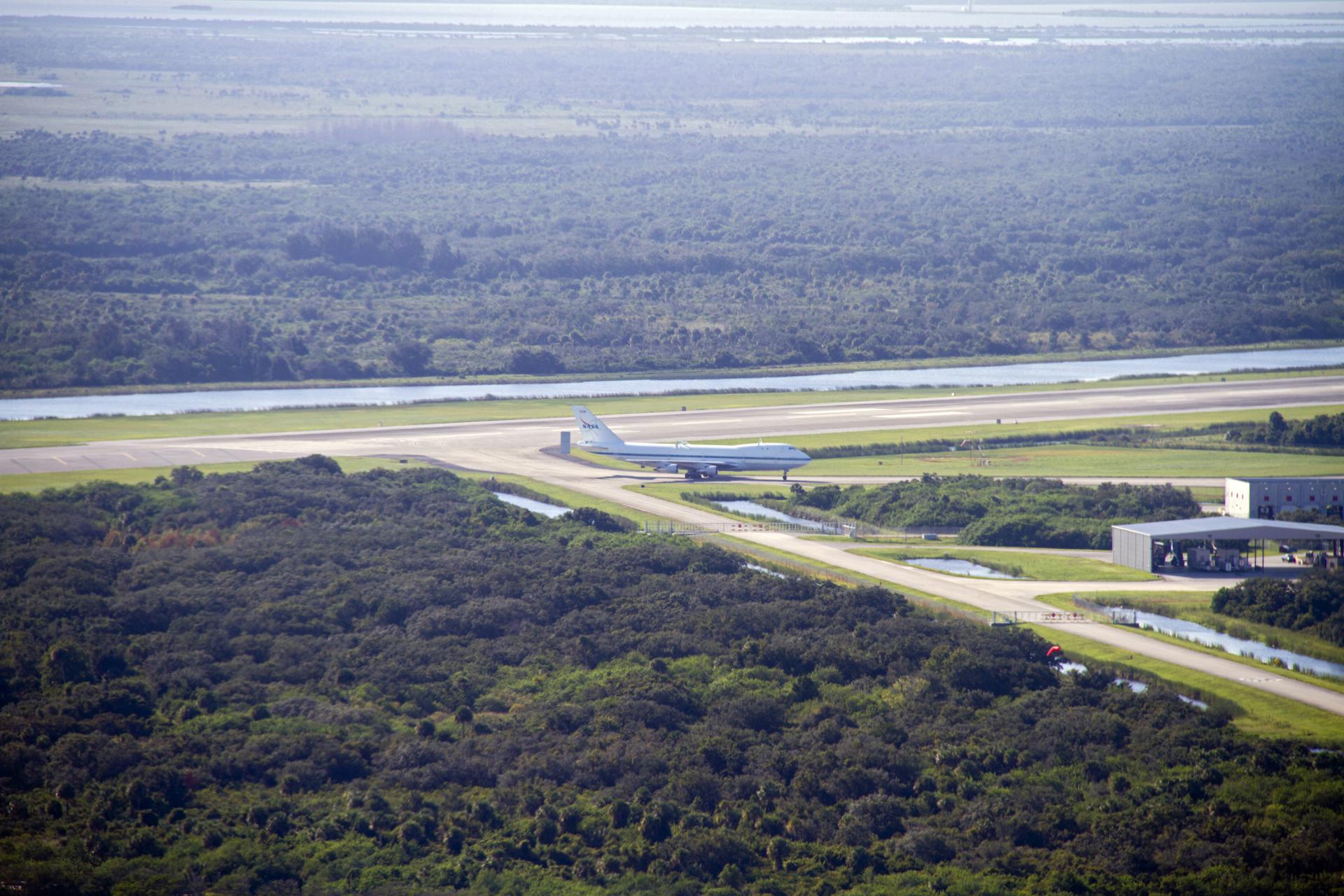 CAPE CANAVERAL, Fla. – The Shuttle Carrier Aircraft, or SCA, rolls to the ramp area of NASA Kennedy Space Center’s Shuttle Landing Facility in Florida. The SCA touched down at 5:05 p.m. EDT to prepare for shuttle Endeavour’s ferry flight to the Los Angeles International Airport on Sept. 17. Photo credit: NASA_ Chris Chamberland
