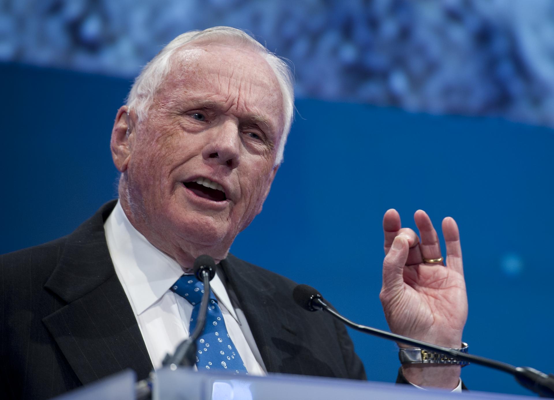 Apollo 11 Astronaut Neil Armstrong speaks during a celebration dinner at Ohio State University honoring the 50th anniversary of John Glenn's historic flight aboard Friendship 7 Monday, Feb. 20, 2012, in Columbus, Ohio. Glenn was the first American to orbit Earth. Photo Credit: (NASA/Bill Ingalls)