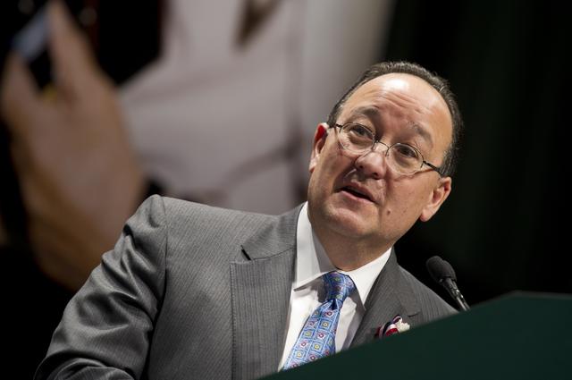 NASA Glenn Research Center Director Ray Lugo talks at an event celebrating John Glenn's legacy and 50 years of americans in orbit held at the Cleveland State University Wolstein Center on Friday, March 3, 2012 in Cleveland, Ohio. Glenn became the first American to orbit Earth in 1962. Photo Credit: (NASA/Bill Ingalls)