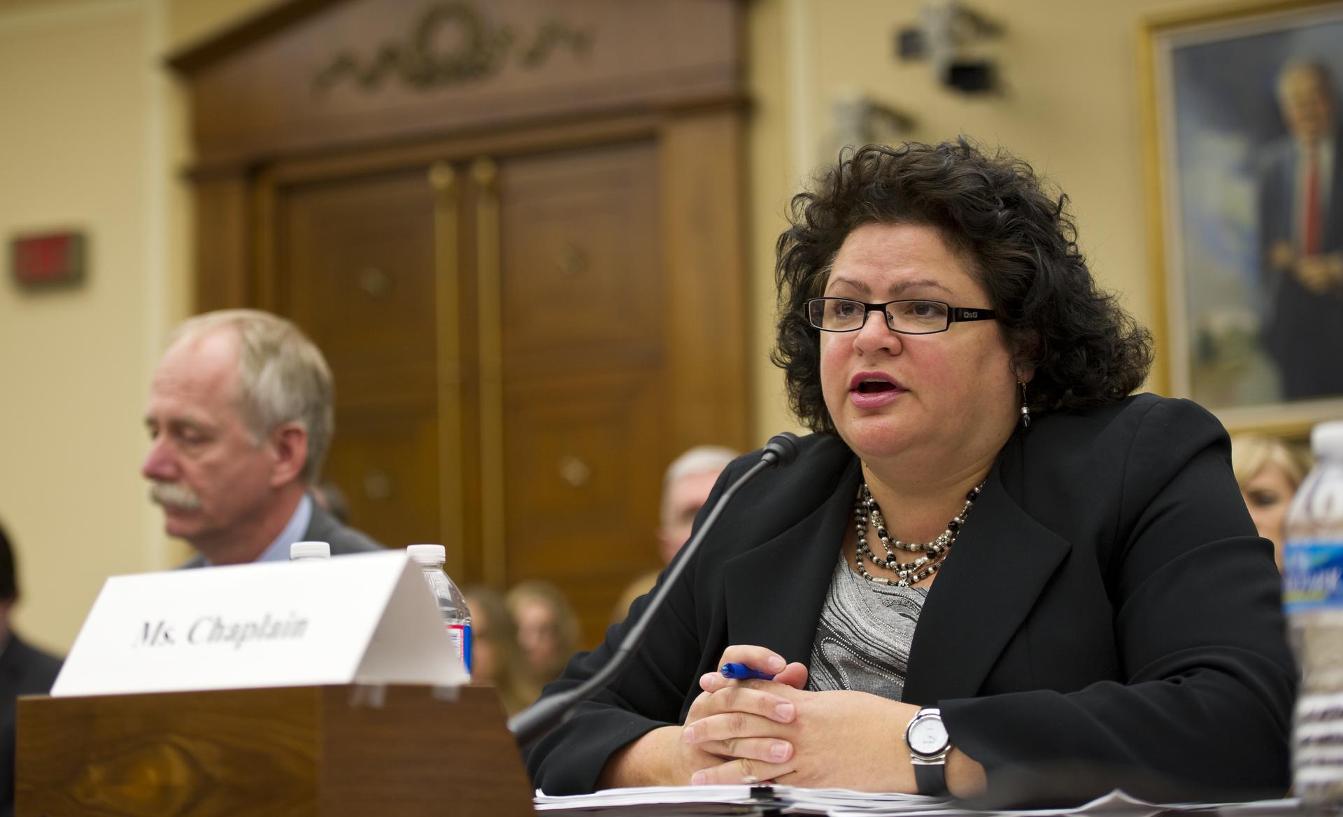 Cristina Chaplain, director, Acquisition and Sourcing Management, U.S. Government Accountability Office testifies during a hearing before the House Committee on Science, Space, and Technology regarding access to and sustainability of the International Space Station, Wednesday, March 28, 2012 at the Rayburn House Office Building in Washington. Photo Credit: (NASA/Carla Cioffi)
