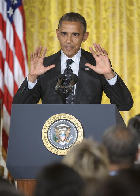 President Barack Obama talks to attendees during the Presidential Medal of Freedom ceremony, held on Tuesday, May 29, 2012, at the White House in Washington. One of the awardees was former United States Marine Corps pilot, astronaut, and United States Senator John Glenn. Photo Credit: (NASA/Bill Ingalls)