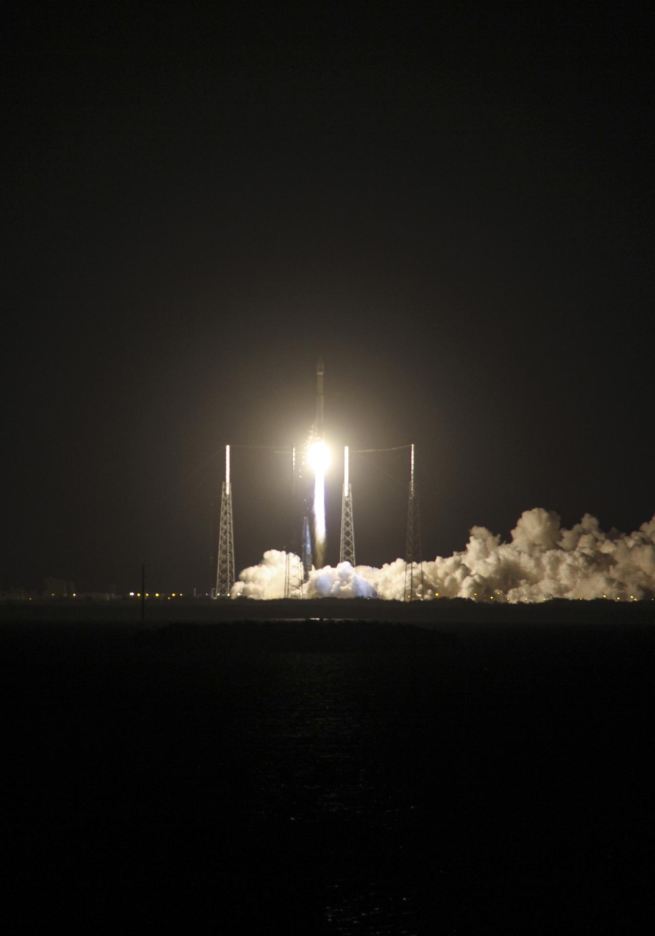 CAPE CANAVERAL, Fla. -- Plumes of exhaust and smoke billow around the lightning masts on Space Launch Complex 41 on Cape Canaveral Air Force Station in Florida as a United Launch Alliance Atlas V 401 rocket lifts off at 8:48 p.m. EST, carrying NASA's Tracking and Data Relay Satellite-K, TDRS-K, to orbit. The TDRS-K spacecraft is part of the next-generation series in the Tracking and Data Relay Satellite System, a constellation of space-based communication satellites providing tracking, telemetry, command and high-bandwidth data return services. For more information, visit http:__www.nasa.gov_mission_pages_tdrs_index.html. Photo credit: NASA_Scott Neener and Cory Huston