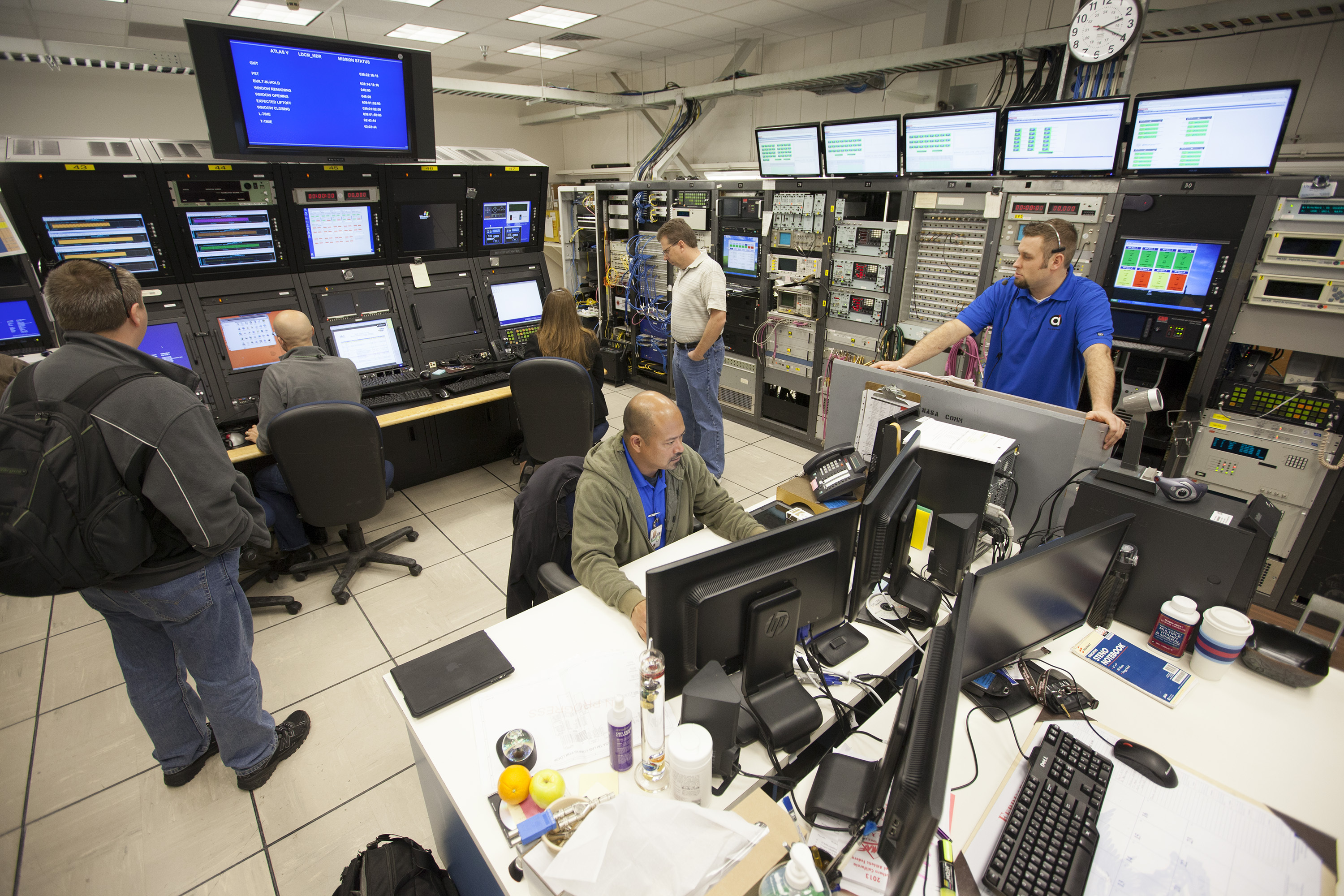 VANDENBERG AFB, Calif. -- From their positions in the telemetry laboratory at Vandenberg Air Force Base, engineers and technicians monitor the countdown for a United Launch Alliance Atlas V with the Landsat Data Continuity Mission, or LDCM, satellite prior to liftoff. The Landsat Data Continuity Mission, or LDCM, is the future of Landsat satellites. It will continue to obtain valuable data and imagery to be used in agriculture, education, business, science, and government. The Landsat Program provides repetitive acquisition of high resolution multispectral data of the Earth's surface on a global basis. The data from the Landsat spacecraft constitute the longest record of the Earth's continental surfaces as seen from space. It is a record unmatched in quality, detail, coverage, and value. Liftoff is planned for Feb. 11, 2013 aboard a United Launch Alliance Atlas V rocket. For more information, visit: http:__www.nasa.gov_mission_pages_landsat_main_index.html Photo credit: NASA_ Kim Shiflett