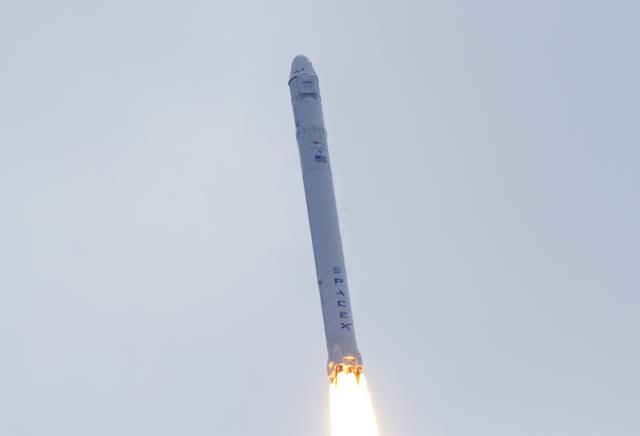 CAPE CANAVERAL, Fla. -- A Space Exploration Technologies, or SpaceX, Falcon 9 rocket lifts off Space Launch Complex 40 on Cape Canaveral Air Force Station in Florida at 10:10 a.m. EST, carrying a Dragon capsule filled with cargo. The SpaceX Dragon capsule is making its third trip to the International Space Station, following a demonstration flight in May 2012 and the first resupply mission in October 2012. The SpaceX-2 mission is the second of 12 SpaceX flights contracted by NASA to resupply the orbiting laboratory. For more information, visit http:__www.nasa.gov_mission_pages_station_structure_launch_spacex2-feature.html Photo credit: NASA_George Roberts