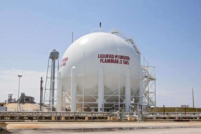 CAPE CANAVERAL, Fla. – At Launch Pad 39B at NASA’s Kennedy Space Center in Florida, the liquid oxygen, or LOX, and liquid hydrogen, or LH2, tanks that supported space shuttle launches for 30 years have been sandblasted, repaired and repainted. The two tanks, designed to store super-cooled LOX and LH2, were refurbished to prepare them to support the launch of NASA’s Space Launch System and other launch vehicles. The Ground Systems Development and Operations, or GSDO, Program office at Kennedy is leading the center’s transformation to safely handle a variety of rockets and spacecraft. For more information about GSDO, visit: http:__go.nasa.gov_groundsystems. Photo credit: NASA_Kim Shiflett