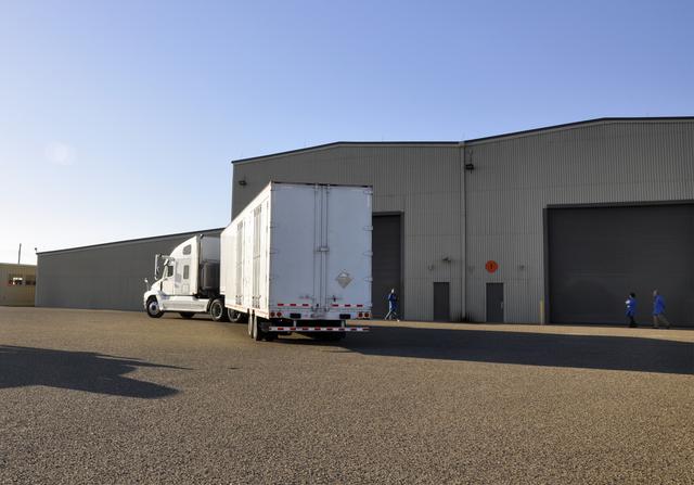 VANDENBERG AFB, Calif. – A truck carrying NASA's IRIS spacecraft nears the processing facility at Vandenberg where the spacecraft will be readied for launch aboard an Orbital Sciences Pegasus XL rocket. IRIS is short for Interface Region Imaging Spectrograph and the spacecraft's mission will improve our understanding of how heat and energy move through the deepest levels of the sun’s atmosphere, thereby increasing our ability to forecast space weather. Photo credit: VAFB_Randy Beaudoin