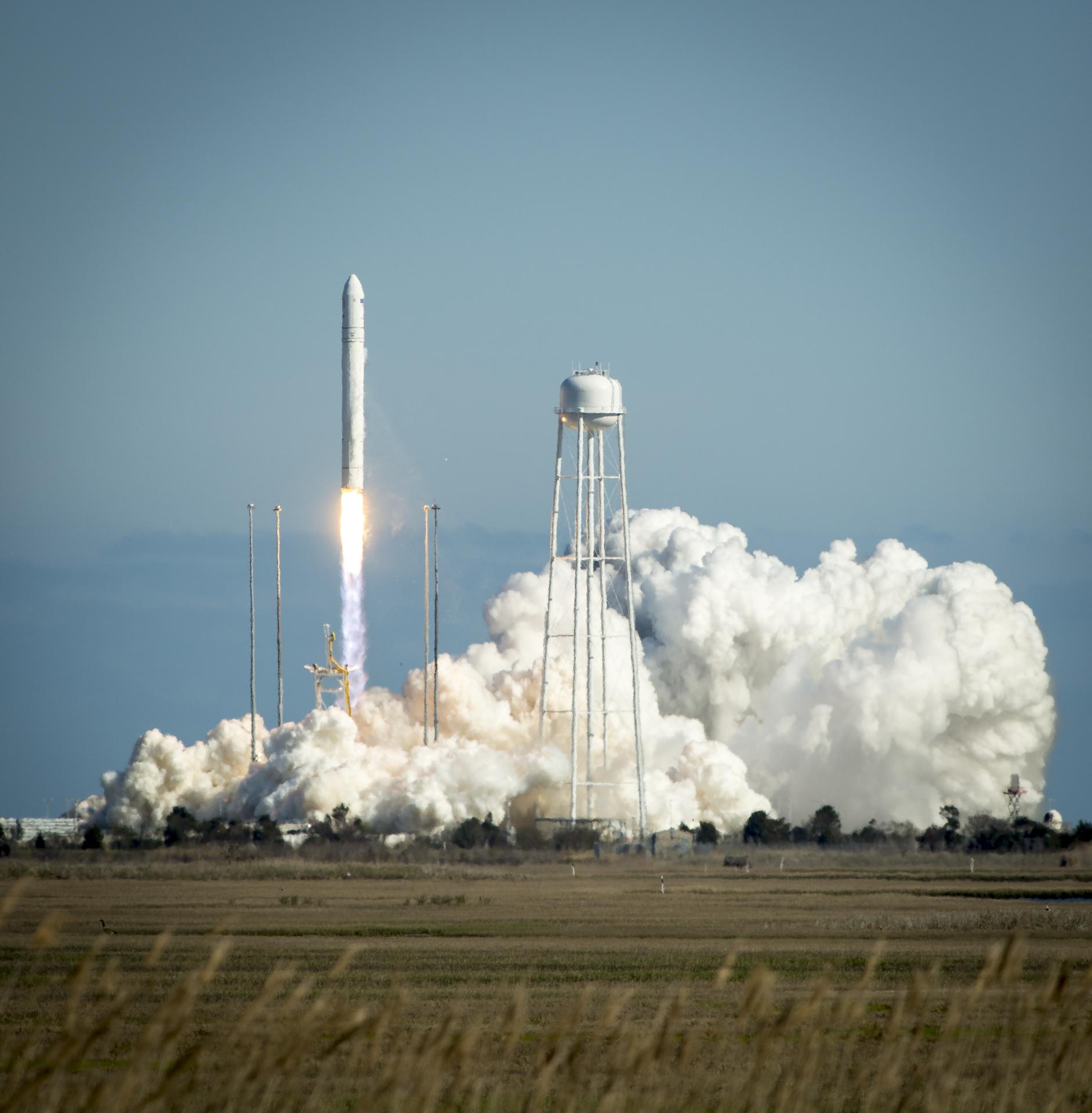 The Orbital Sciences Corporation Antares rocket is seen as it launches from Pad-0A of the Mid-Atlantic Regional Spaceport (MARS) at the NASA Wallops Flight Facility in Virginia, Sunday, April 21, 2013. The test launch marked the first flight of Antares and the first rocket launch from Pad-0A. The Antares rocket delivered the equivalent mass of a spacecraft, a so-called mass simulated payload, into Earth's orbit. Photo Credit: (NASA/Bill Ingalls)