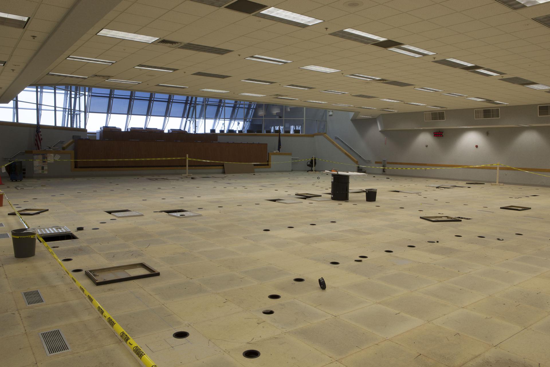 CAPE CANAVERAL, Fla. – In Firing Room 4 in the Launch Control Center at NASA’s Kennedy Space Center in Florida, the legacy consoles, Launch Processing System and cabling that once supported the Space Shuttle Program have been removed. The Ground Systems Development and Operations Program is overseeing the construction in progress on a multi-use control room that will support NASA and commercial launch needs. The design of Firing Room 4 will incorporate five control room areas that are flexible to meet current and future user requirements. The equipment and consoles from Firing Room 4 are being moved to Firing Room 2 for possible future reuse. Photo credit: NASA_Dimitri Gerondidakis
