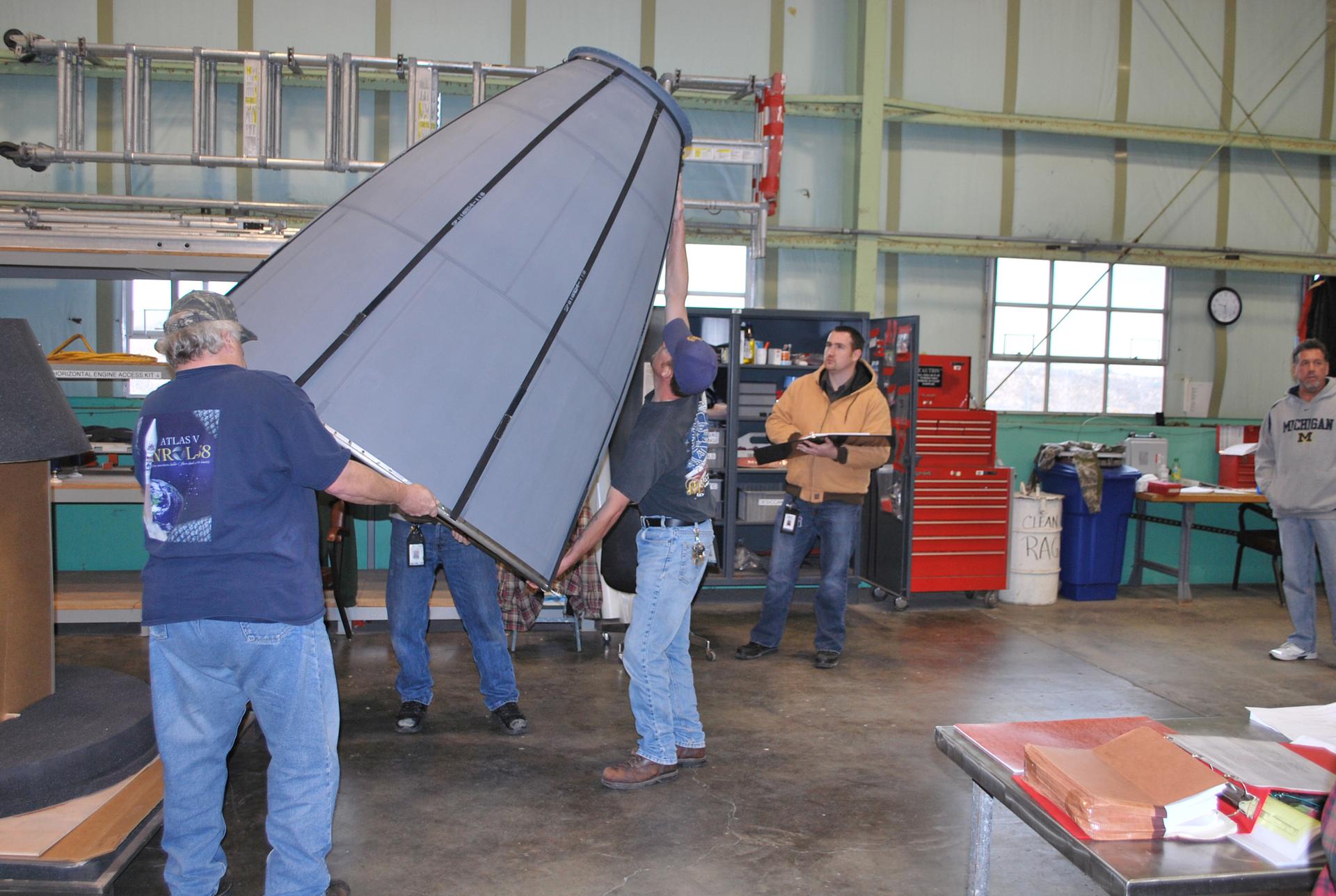 VANDENBERG AIR FORCE BASE, Calif. – In the Horizontal Processing Facility at Space Launch Complex 2 on Vandenberg Air Force Base in California, workers prepare to install the engine bell around the second-stage nozzle of the Delta II rocket for NASA's Orbiting Carbon Observatory-2 mission, or OCO-2. OCO-2 is scheduled to launch aboard a United Launch Alliance Delta II rocket from Space Launch Complex 2 in July. The rocket's second stage will insert OCO-2 into a polar Earth orbit. OCO-2 will collect precise global measurements of carbon dioxide in the Earth's atmosphere and provide scientists with a better idea of the chemical compound's impacts on climate change. Scientists will analyze this data to improve our understanding of the natural processes and human activities that regulate the abundance and distribution of this important atmospheric gas. To learn more about OCO-2, visit http:__oco.jpl.nasa.gov. Photo credit: NASA_Randy Beaudoin