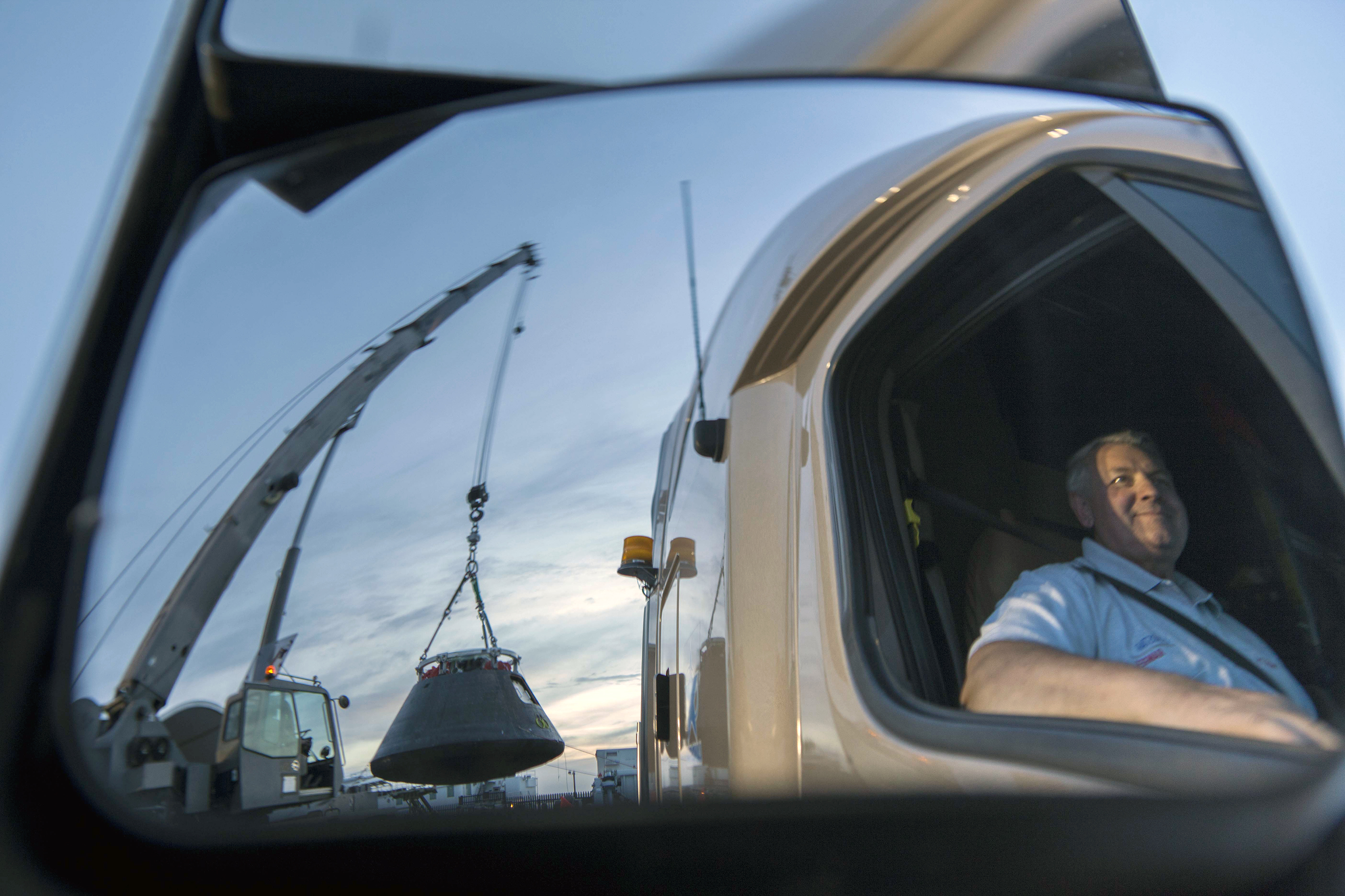 Orion is Taken From Ship and Put in Shipping Container