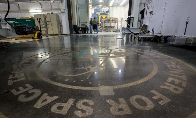 One of four Magnetospheric Multiscale (MMS) spacecraft, in the background, is seen in a cleanroom at the Naval Research Lab’s, Naval Center for Space Technology, Monday, August 4, 2014, in Washington. The Magnetospheric Multiscale, or MMS, mission will study the mystery of how magnetic fields around Earth connect and disconnect, explosively releasing energy via a process known as magnetic reconnection. The four identical spacecraft are scheduled to launch in 2015 from Cape Canaveral and will orbit around Earth in varying formations through the dynamic magnetic system surrounding our planet to provide the first three-dimensional views of the magnetic reconnection process. The goal of the STP Program is to understand the fundamental physical processes of the space environment from the sun to Earth, other planets, and the extremes of the solar system boundary. Photo Credit: (NASA/Bill Ingalls)