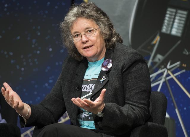 Dr. Fran Bagenal, senior scientist at the University of Colorado, speaks during a panel discussion at the "NASA's New Horizons Pluto Mission: Continuing Voyager's Legacy of Exploration" event on Monday, August, 25, 2014, in the James E. Webb Auditorium at NASA Headquarters in Washington, DC. The panelists gave their accounts of Voyager's encounter with Neptune and discussed their current assignments on NASA's New Horizons mission to Pluto. Photo Credit: (NASA/Joel Kowsky)