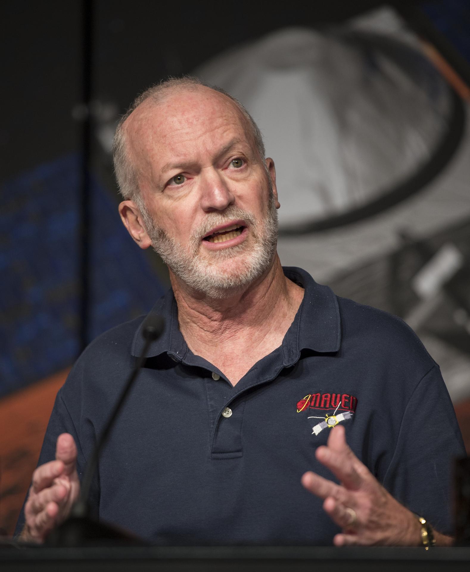 Bruce Jakosky, MAVEN principal investigator, Laboratory for Atmospheric and Space Physics, University of Colorado, Boulder, is seen during a media briefing where he and other panelist outlined activities around the Sunday, Sept. 21 orbital insertion at Mars of the agency’s Mars Atmosphere and Volatile EvolutioN (MAVEN) spacecraft, Wednesday, Sept. 17, 2014 at NASA Headquarters in Washington. (Photo credit: NASA/Bill Ingalls)