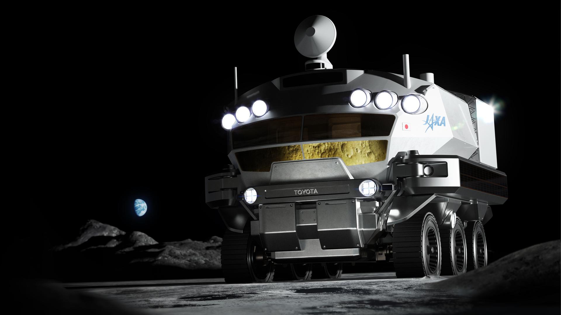 A concept image of a pressurized rover on the surface of the Moon. Image Credit: JAXA/Toyota