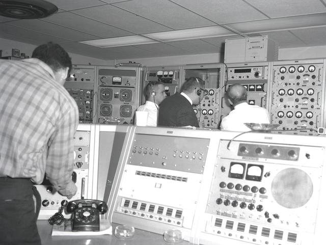 Activities at Green Mountain Tracking Station, Alabama, during lift-off of the Saturn I, SA-9 mission, showing the overall view of instrument panels used in tracking the Pegasus, meteoroid-detection satellite. The satellite was used to obtain data on frequency and penetration of the potentially hazardous micrometeoroids in low Earth orbits and to relay the information back to Earth.