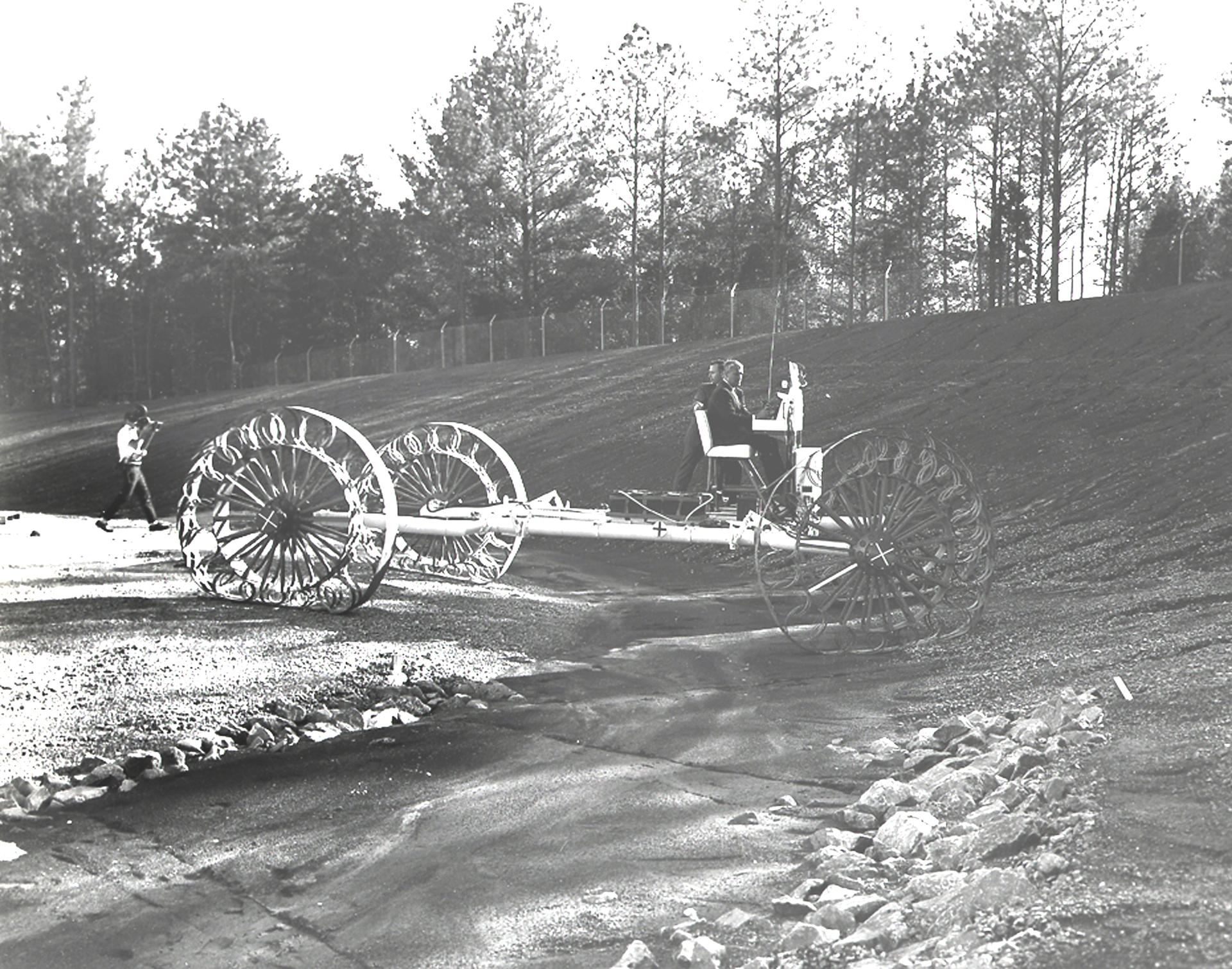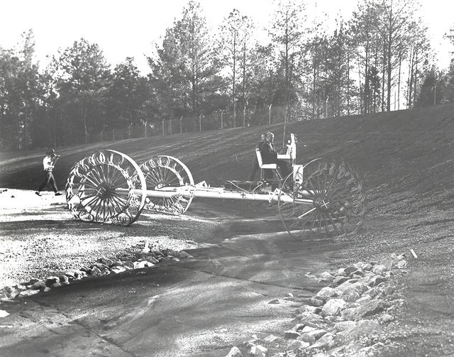 In this June, 1966 photograph, Marshall Space Flight Center Director, Dr. Wernher von Braun test drives the Mobility Test Article (MTA), a developmental vehicle built by the Bendix Corporation to test lunar mobility concepts. The data provided by the MTA helped in designing the Lunar Roving Vehicle (LRV), developed under the direction of the Marshall Space Flight Center. The LRV was designed to allow Apollo astronauts a greater range during lunar exploration missions and served its purpose during the last three Apollo lunar missions in 1971 and 1972.