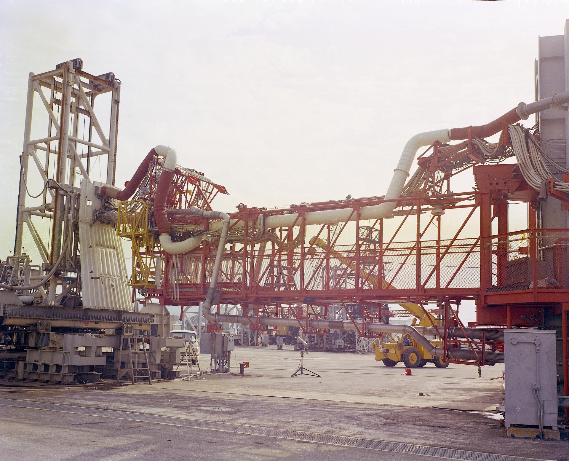 The Marshall Space Flight Center (MSFC) played a crucial role in the development of the huge Saturn rockets that delivered humans to the moon in the 1960s. Many unique facilities existed at MSFC for the development and testing of the Saturn rockets. Affectionately nicknamed “The Arm Farm”, the Random Motion/ Lift-Off Simulator was one of those unique facilities. This facility was developed to test the swingarm mechanisms that were used to hold the rocket in position until lift-off. The Arm Farm provided the capability of testing the detachment and reconnection of various arms under brutally realistic conditions. The 18-acre facility consisted of more than a half dozen arm test positions and one position for testing access arms used by the Apollo astronauts. Each test position had two elements: a vehicle simulator for duplicating motions during countdown and launch; and a section duplicating the launch tower. The vehicle simulator duplicated the portion of the vehicle skin that contained the umbilical connections and personnel access hatches. Driven by a hydraulic servo system, the vehicle simulator produced relative motion between the vehicle and tower. On the Arm Farm, extreme environmental conditions (such as a launch scrub during an approaching Florida thunderstorm) could be simulated. The dramatic scenes that the Marshall engineers and technicians created at the Arm Farm permitted the gathering of crucial technical and engineering data to ensure a successful real time launch from the Kennedy Space Center.