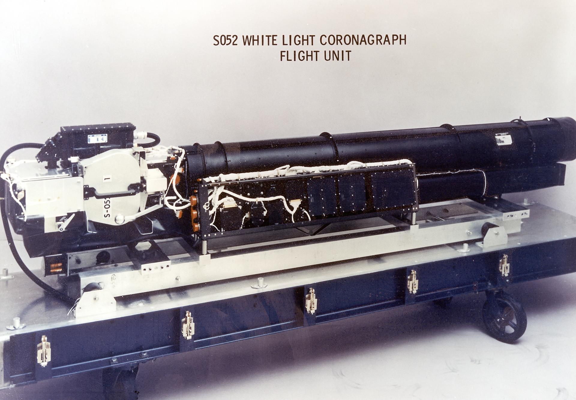 This 1970 photograph shows the flight unit for Skylab's White Light Coronagraph, an Apollo Telescope Mount (ATM) facility that photographed the solar corona in the visible light spectrum. A TV camera in the instrument provided real-time pictures of the occulted Sun to the astronauts at the control console and also transmitted the images to the ground. The Marshall Space Flight Center had program management responsibility for the development of Skylab hardware and experiments.