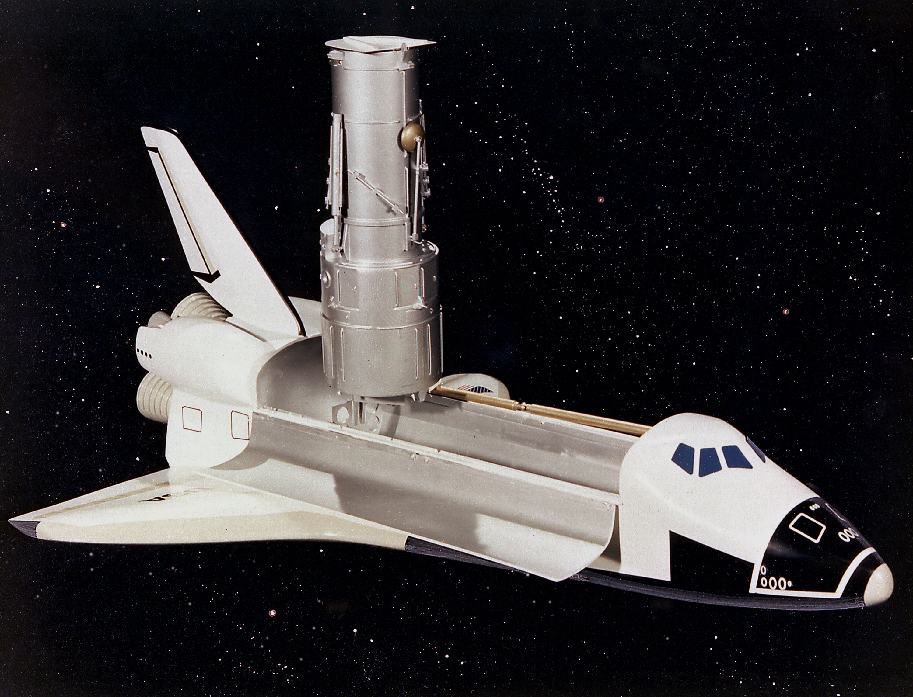 This artist's concept depicts the Hubble Space Telescope (HST) being raised to a vertical position in the cargo bay of the Space Shuttle orbiter. The HST is the product of a partnership between NASA, European Space Agency Contractors, and the international community of astronomers. It is named after Edwin P. Hubble, an American Astronomer who discovered the expanding nature of the universe and was the first to realize the true nature of galaxies. The purpose of the HST, the most complex and sensitive optical telescope ever made, is to study the cosmos from a low-Earth orbit. By placing the telescope in space, astronomers are able to collect data that is free of the Earth's atmosphere. The HST detects objects 25 times fainter than the dimmest objects seen from Earth and provides astronomers with an observable universe 250 times larger than visible from ground-based telescopes, perhaps as far away as 14 billion light-years. The HST views galaxies, stars, planets, comets, possibly other solar systems, and even unusual phenomena such as quasars, with 10 times the clarity of ground-based telescopes. The major elements of the HST are the Optical Telescope Assembly (OTA), the Support System Module (SSM), and the Scientific Instruments (SI). The HST is 42.5-feet (13-meters) long and weighs about 25,000 pounds (11,600 kilograms). The HST was deployed from the Space Shuttle Discovery (STS-31 mission) into Earth orbit in April 1990. The Marshall Space Flight Center had responsibility for design, development, and construction of the HST. The Perkin-Elmer Corporation, in Danbury, Cornecticut, developed the optical system and guidance sensors. The Lockheed Missile and Space Company of Sunnyvale, California produced the protective outer shroud and spacecraft systems, and assembled and tested the finished telescope.
