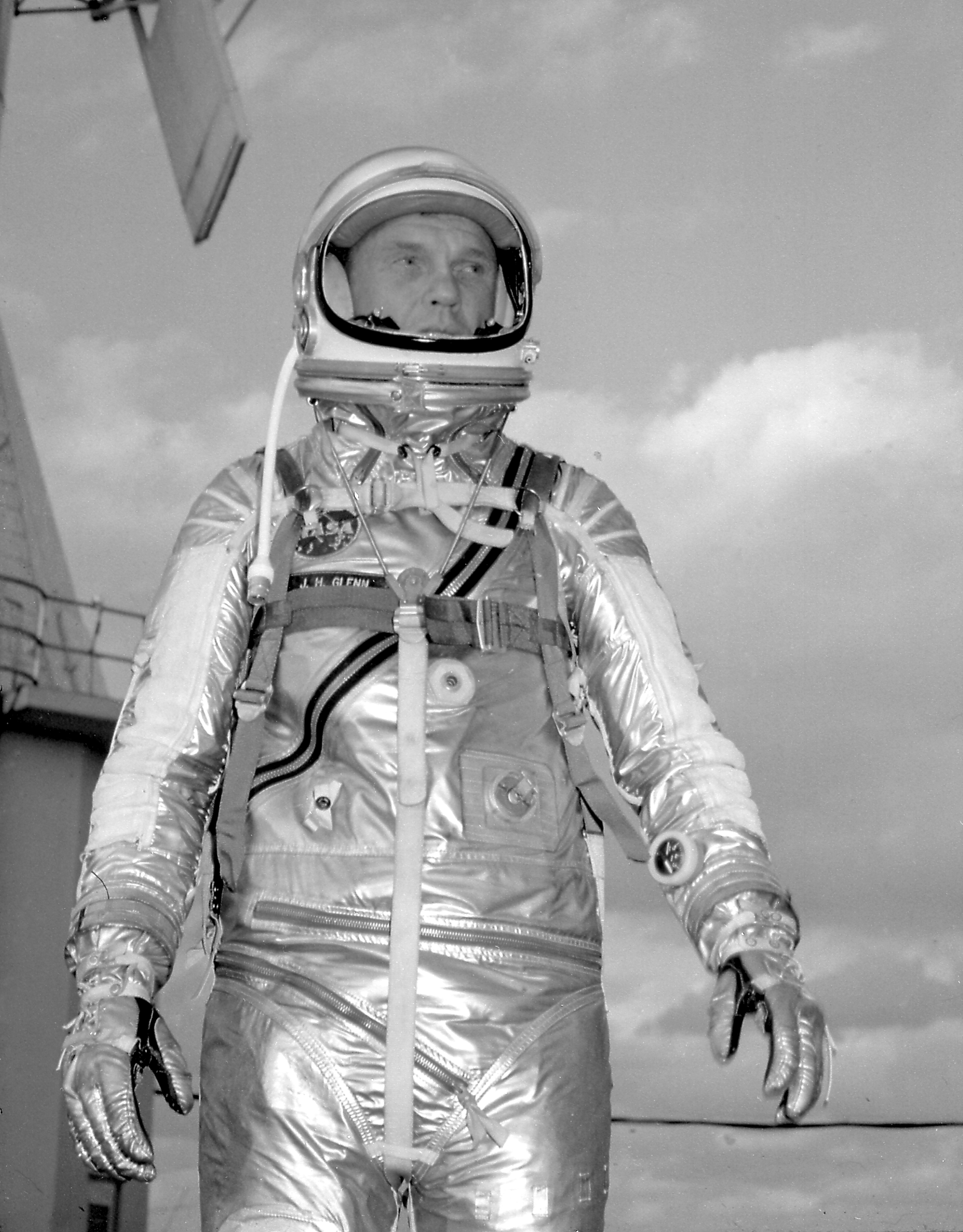 Astronaut John H. Glenn, one of the original seven astronauts for Mercury Project selected by NASA on April 27, 1959. The MA-6 mission, boosted by the Mercury-Atlas vehicle, was the first manned orbital launch by the United States, and carried Astronaut Glenn aboard the Friendship 7 spacecraft to orbit the Earth.