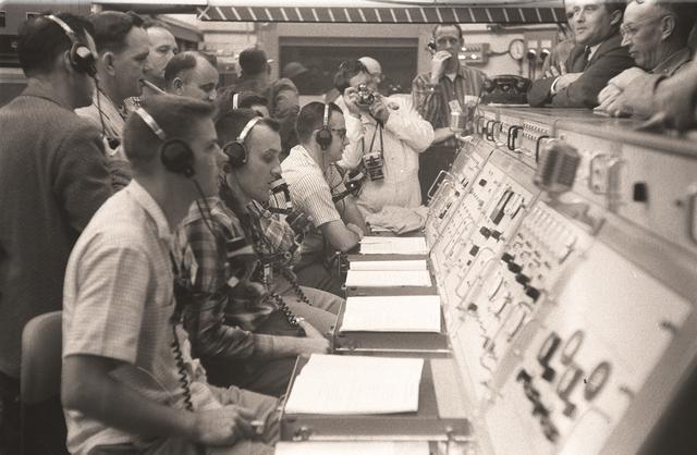 Dr. von Braun at the launch control room during the Pioneer IV launch, March 3, 1959.