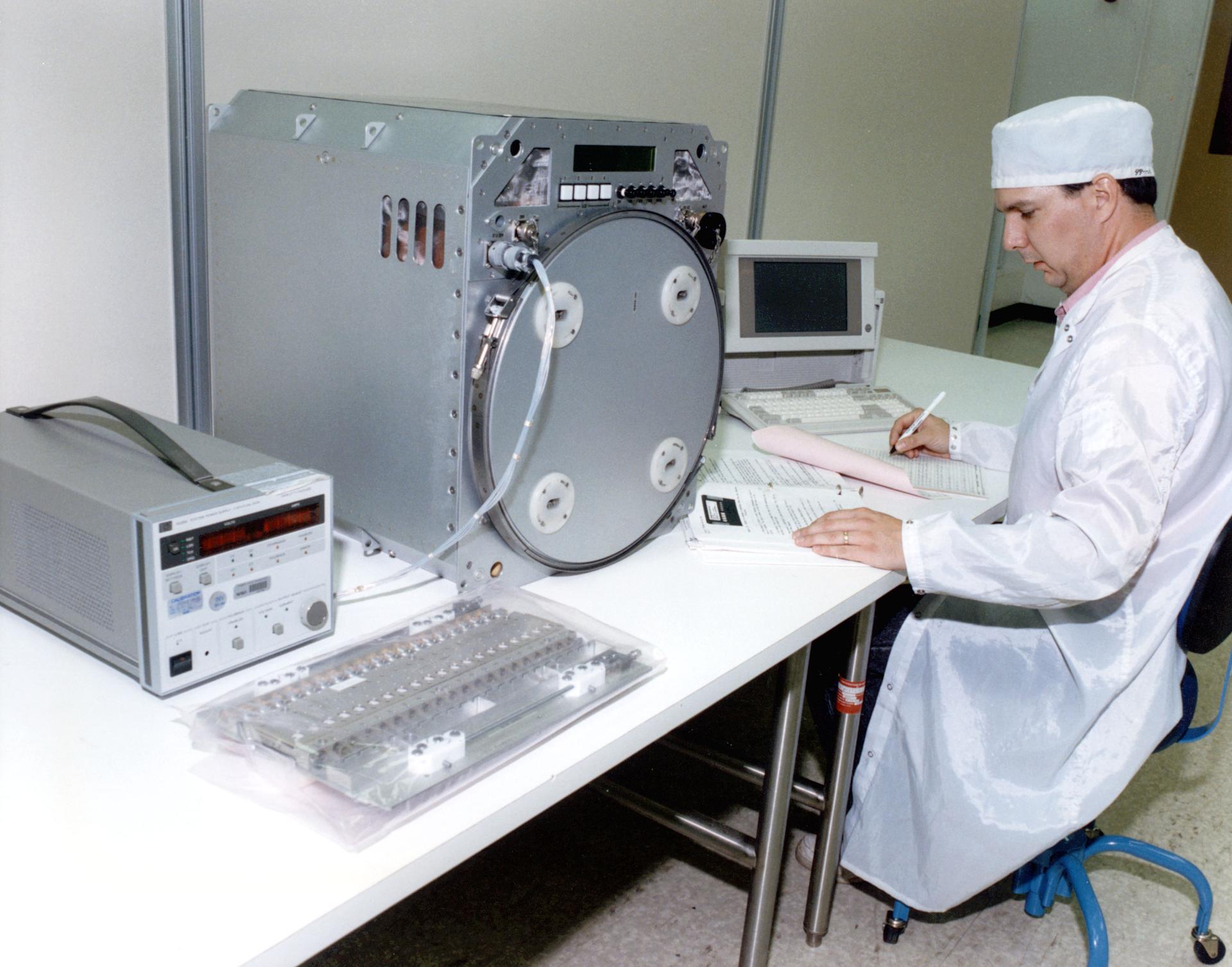 MSFC Test Engineer performing a functional test on the TES. The TES can be operated as a refrigerator, with a minimum set point temperature of 4.0 degrees C, or as an incubator, with a maximum set point temperature 40.0 degrees C of the set point. The TES can be set to maintain a constant temperature or programmed to change temperature settings over time, internal temperature recorded by a date logger.