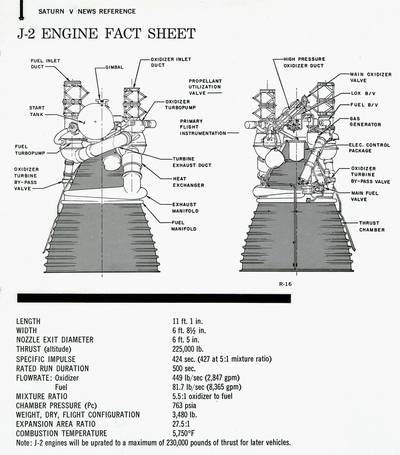 This figure is a line drawing of the J-2 engine with callouts of the major components and the engine characteristics.