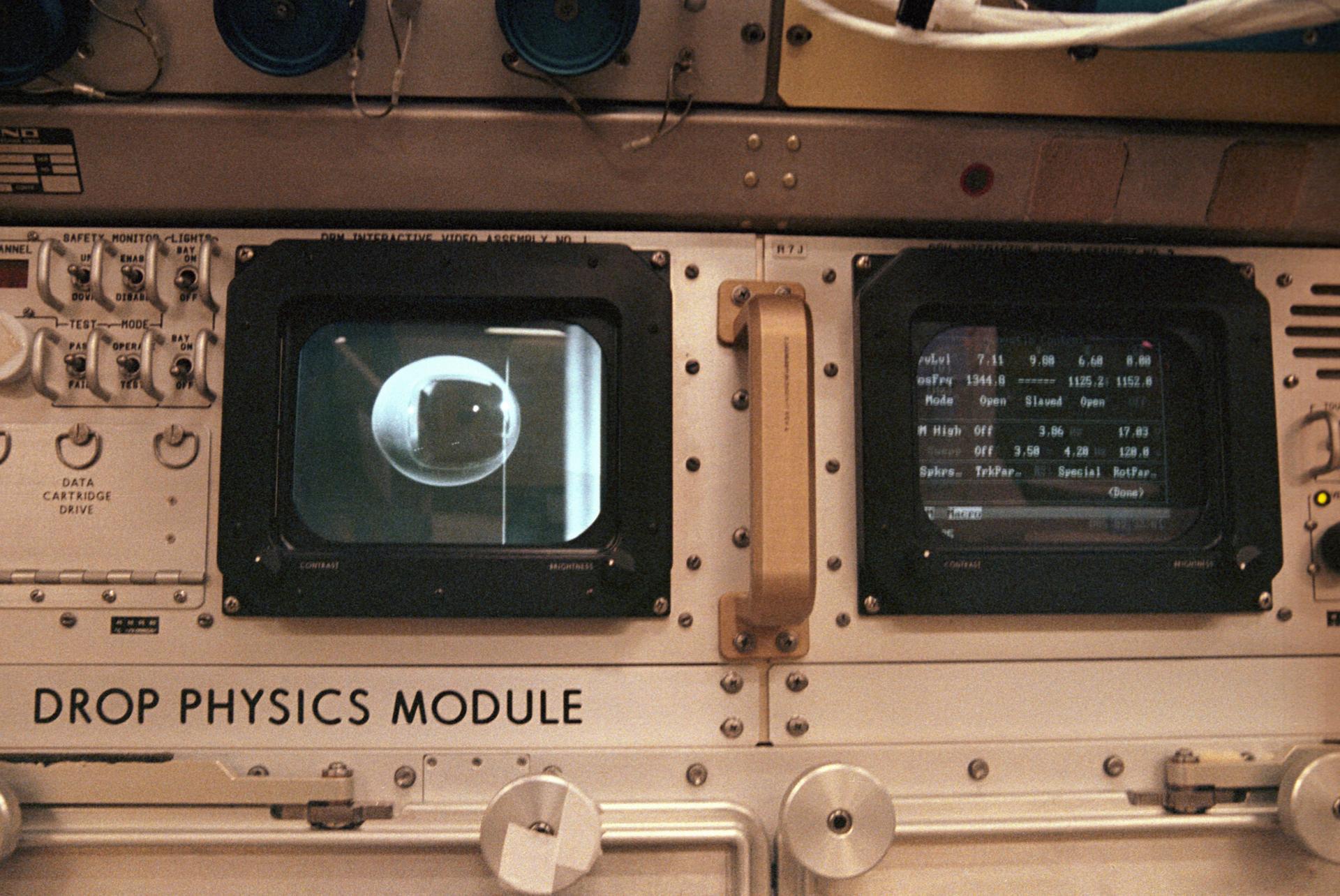 The first United States Microgravity Laboratory (USML-1) was one of NASA's science and technology programs that provided scientists an opportunity to research various scientific investigations in a weightlessness environment inside the Spacelab module. It also provided demonstrations of new equipment to help prepare for advanced microgravity research and processing aboard the Space Station. The USML-1 flew in orbit for extended periods, providing greater opportunities for research in materials science, fluid dynamics, biotechnology (crystal growth), and combustion science. This is a close-up view of the Drop Physics Module (DPM) in the USML science laboratory. The DPM was dedicated to the detailed study of the dynamics of fluid drops in microgravity: their equilibrium shapes, the dynamics of their flows, and their stable and chaotic behaviors. It also demonstrated a technique known as containerless processing. The DPM and microgravity combine to remove the effects of the container, such as chemical contamination and shape, on the sample being studied. Sound waves, generating acoustic forces, were used to suspend a sample in microgravity and to hold a sample of free drops away from the walls of the experiment chamber, which isolated the sample from potentially harmful external influences. The DPM gave scientists the opportunity to test theories of classical fluid physics, which have not been confirmed by experiments conducted on Earth. This image is a close-up view of the DPM. The USML-1 flew aboard the STS-50 mission on June 1992, and was managed by the Marshall Space Flight Center.