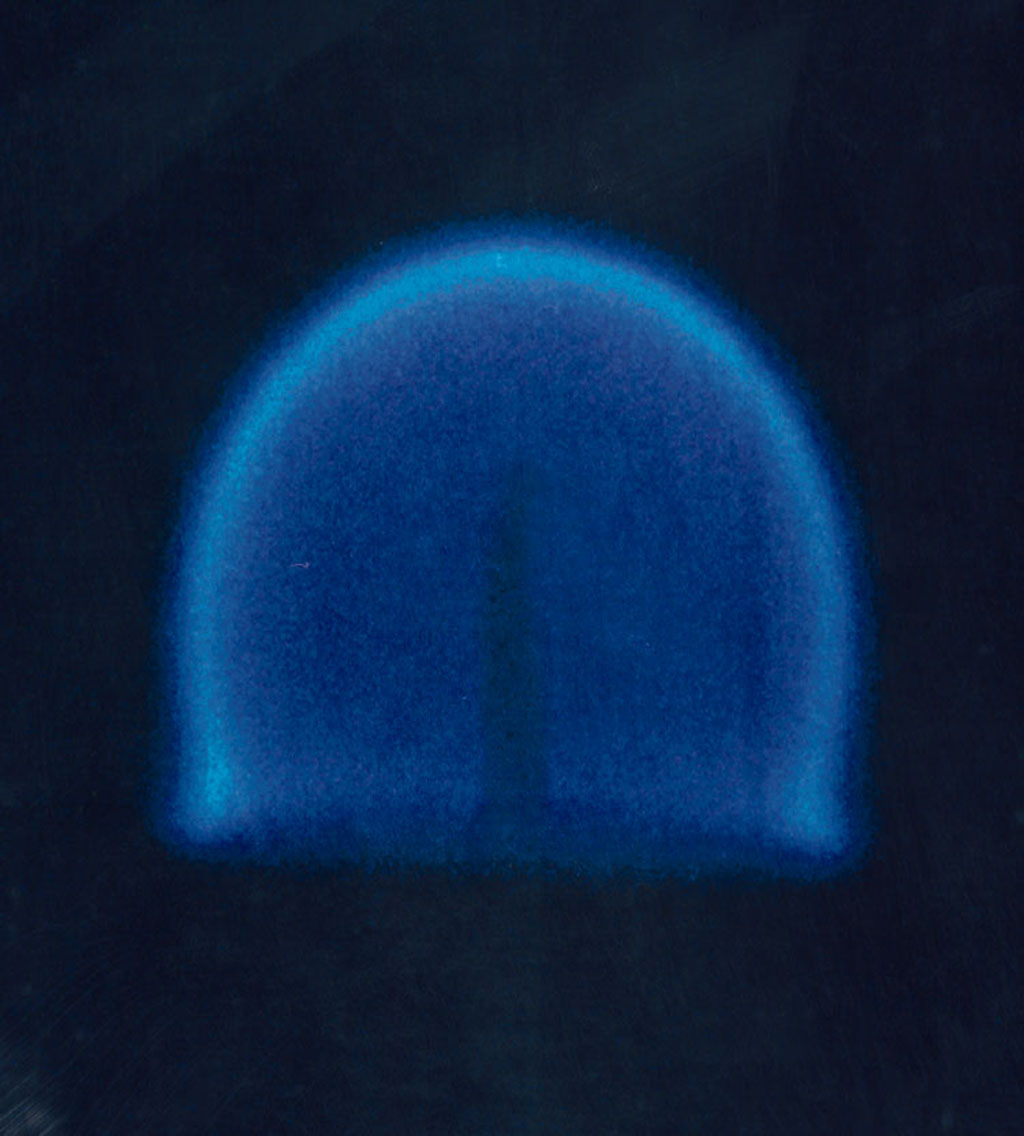 This photograph from CFM is a candle flame burning over time in microgravity, it shows that the candle flame continues to grow and exhibits less soot.