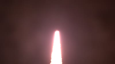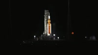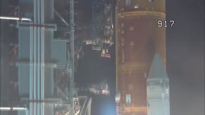 This is a collage of various views during the Artemis launch at Kennedy Space Center.