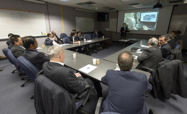 Senior executives from the Renault-Nissan Alliance visited Ames meet with Ames management. Here they are gathered for a Autonomous Drive demo presentation by Terry Fong, Ames Research Center.