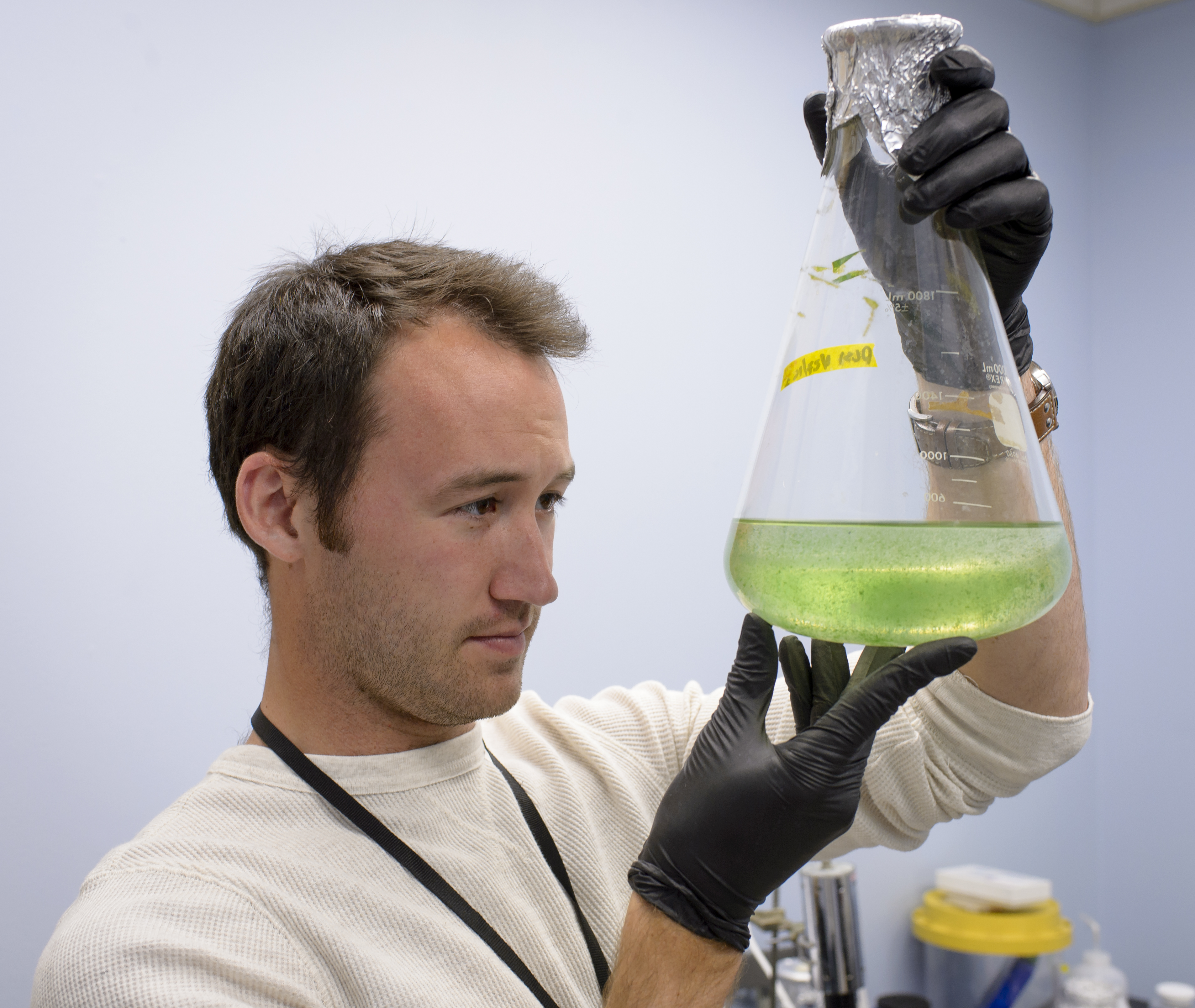 EuCROPIS EVT-2 Power Cell in N-239 Lab Griffin McCutcheon with flask of Anabaena culture