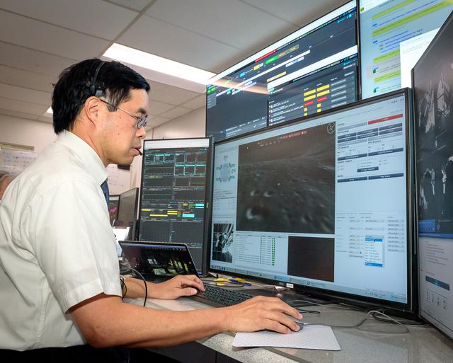 Terry Fong during the Volatiles Investigating Polar Exploration Rover (VIPER) vehicle operational readiness test in the Multi-Mission Operations Center (MMOC), N240A.