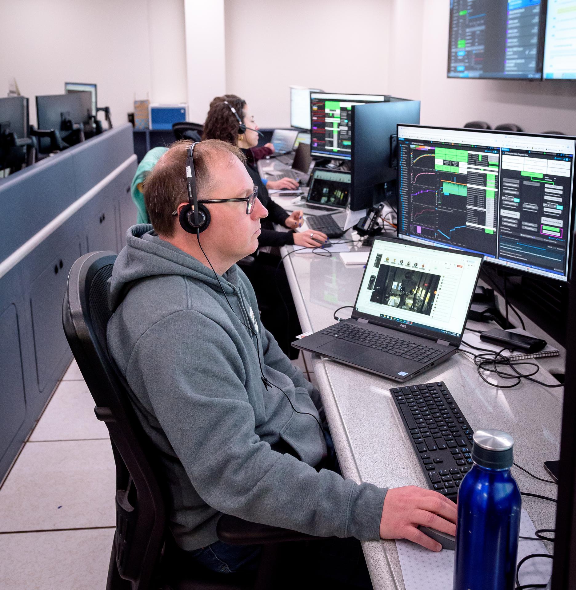 Richard Bielawski during the Volatiles Investigating Polar Exploration Rover (VIPER) vehicle operational readiness test in the Multi-Mission Operations Center (MMOC), N240A.