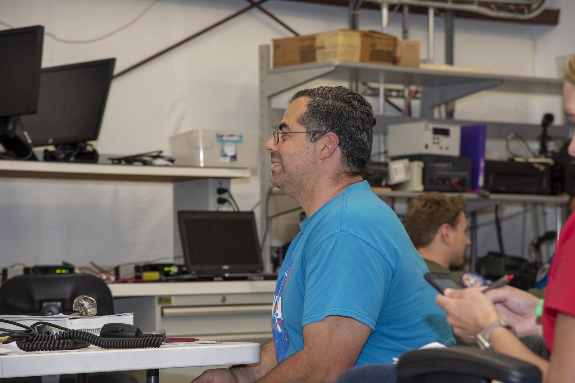 NASA mission controllers, engineers, pilots and communications specialists in the mission control room monitor the supersonic research flight off the coast of Galveston, as part of the QSF18 flight series. The flight operations crew tracks the status of the flights, maintains communications with the aircraft, communicates with U.S. Coast Guard, and coordinates community feedback data.