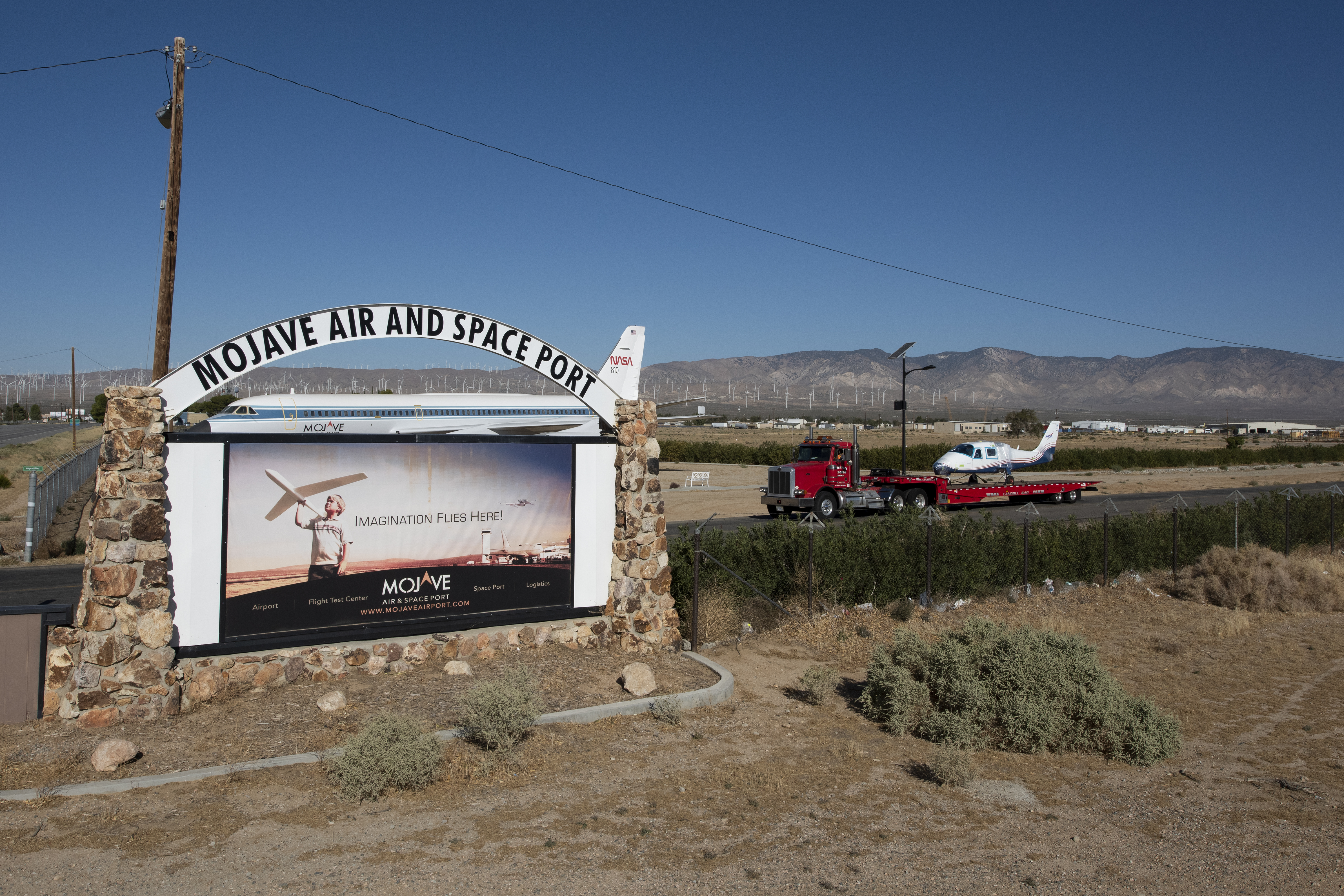 NASA’s all-electric X-57 Maxwell, in its Mod II configuration, departs Scaled Composites’ facility at Mojave Air and Space Port, en route to NASA’s Armstrong Flight Research Center in Edwards, California for delivery. The aircraft, shipped as two parts – the fuselage and the wing – was delivered to NASA Armstrong’s Research Aircraft Integration Facility, where it will be reintegrated to begin ground tests, to be followed by taxi tests, and eventually, flight tests. X-57’s Mod II configuration, the first of three primary modifications for the project, involves testing of the aircraft’s cruise electric propulsion system. The goal of the X-57 project is to share the aircraft’s electric-propulsion-focused design and airworthiness process with regulators, to advance certification approaches for distributed electric propulsion in general aviation.