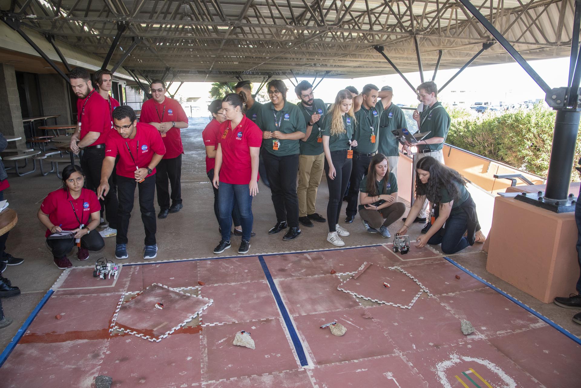 Four student teams: Blue, Gold, Green and Red built, designed and tested a LEGO robotic Martian rover prototype at NASA's Armstrong Flight Research Center. The teams competed against each other during a four-day workshop coordinated by the NASA Community College Aerospace Scholars. Each team prepared a marketing package to "sell" their design to NASA based on the performance of its Martian rover.