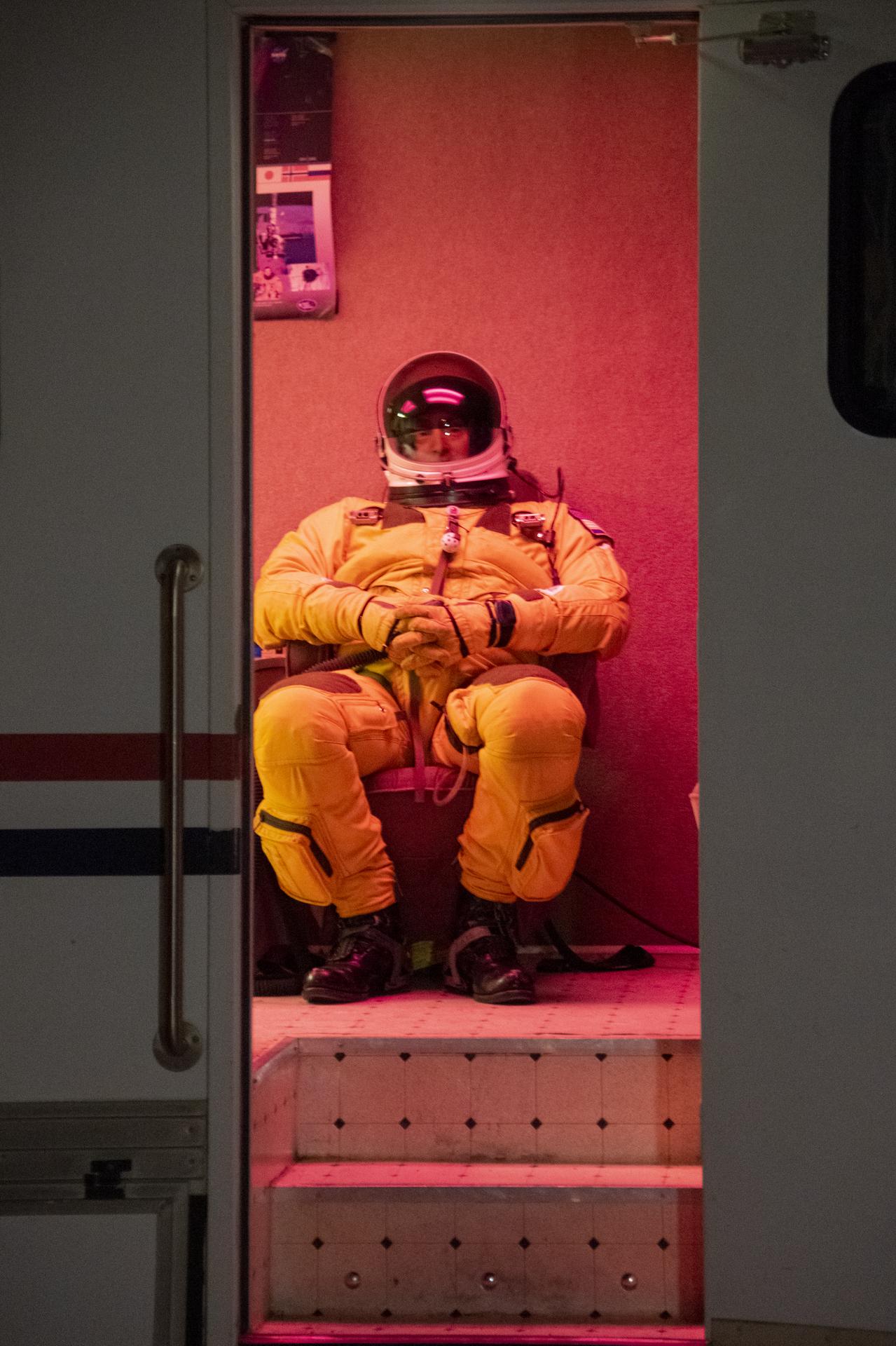 Pilot Stu Broce is pre-breathing 100% oxygen prior to take off for an Air-LUSI flight at NASA’s Armstrong Flight Research Center.
