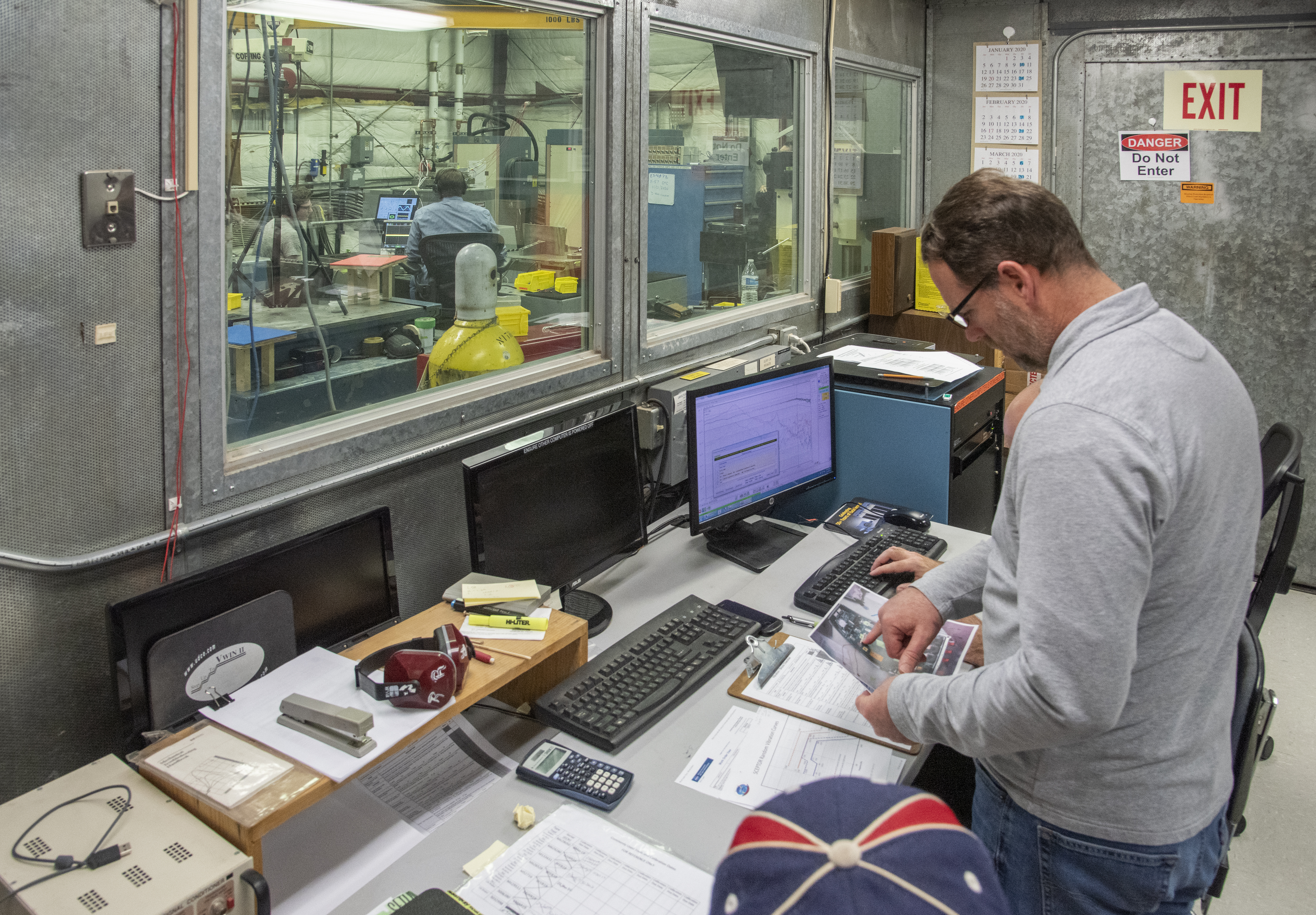 Engineers monitor data during vibration testing of a cruise motor controller for the X-57 Maxwell, NASA’s first all-electric X-plane. Attached to a table at NASA Armstrong Flight Research Center’s environmental lab, the cruise motor controller is exposed to specific levels of vibration, allowing NASA to examine the structural integrity of the hardware. Engineers, meanwhile, monitored data, including waveforms of electrical current, and recorded readings.