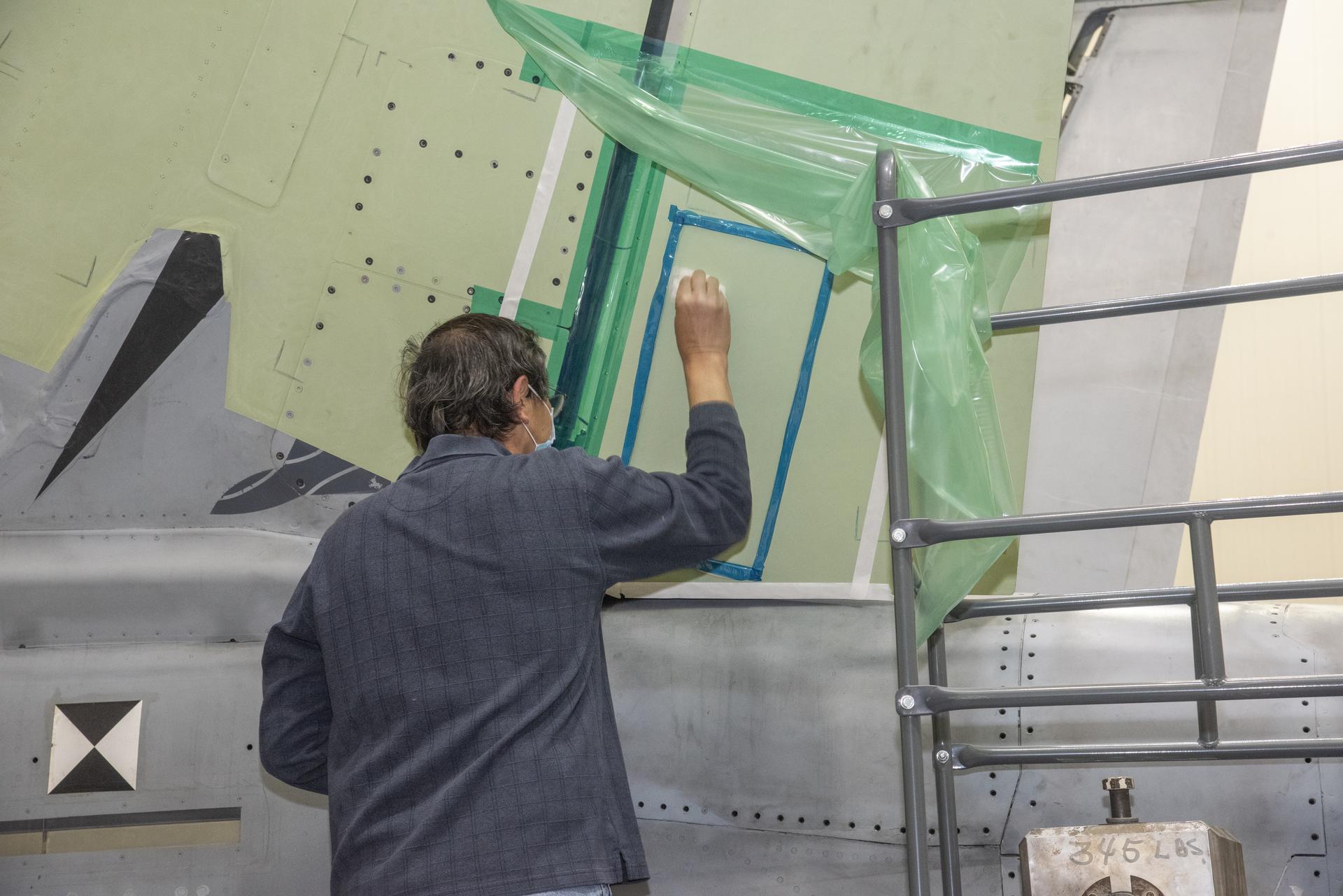 The load pad bonding process for the vertical tails was a preliminary step in the process to test the F/A-18E from the Naval Air Systems Command (NAVAIR) in Patuxent River, Maryland. The aircraft is in NASA’s Armstrong Flight Research Center Flight Loads Laboratory in Edwards, California, for the center’s biggest load calibrations tests. This testing is needed before the aircraft can serve as a test vehicle for determining if it can safely manage maneuvers and proposed upgrades.