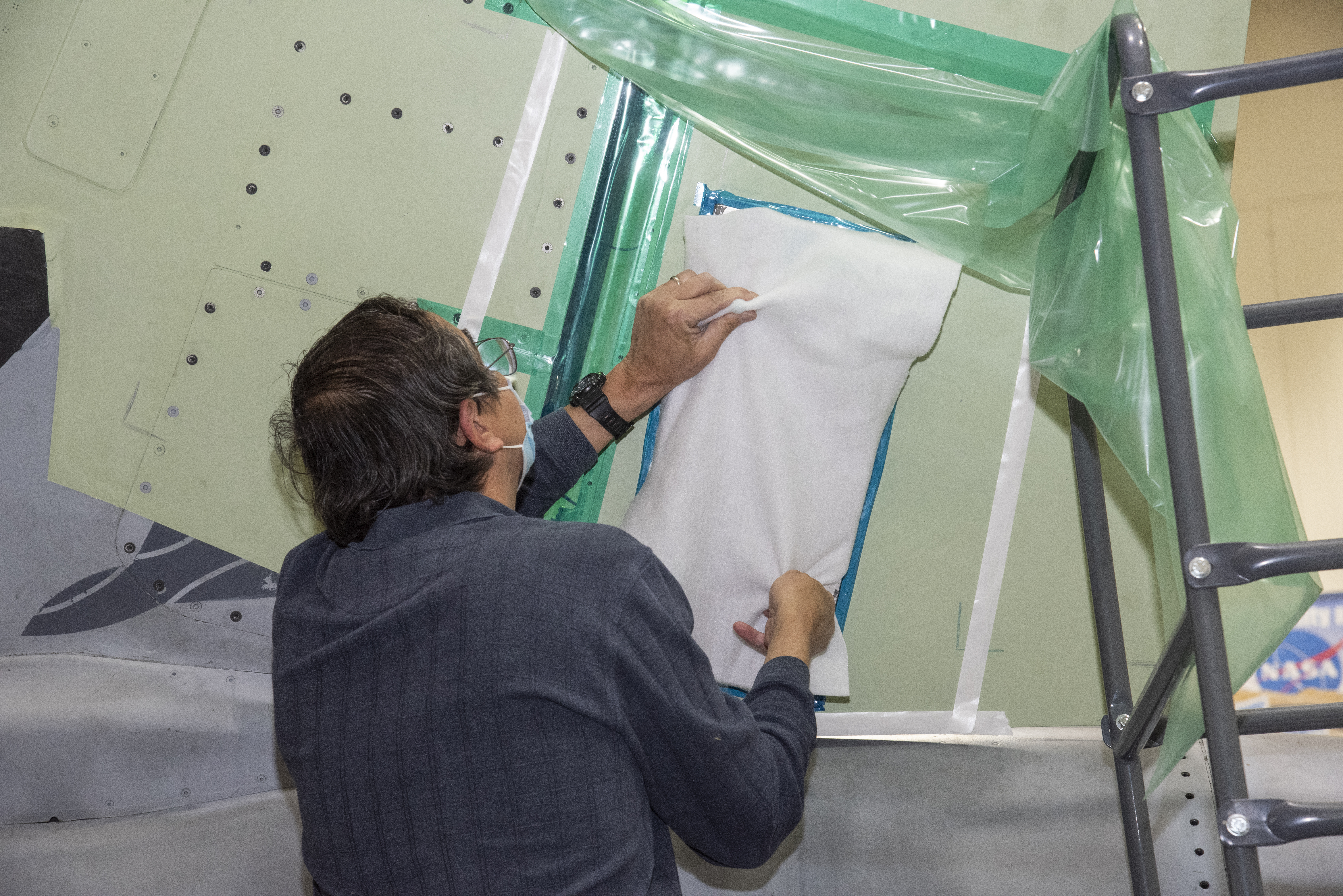 The load pad bonding process for the vertical tails was a preliminary step in the process to test the F/A-18E from the Naval Air Systems Command (NAVAIR) in Patuxent River, Maryland. The aircraft is in NASA’s Armstrong Flight Research Center Flight Loads Laboratory in Edwards, California, for the center’s biggest load calibrations tests. This testing is needed before the aircraft can serve as a test vehicle for determining if it can safely manage maneuvers and proposed upgrades.