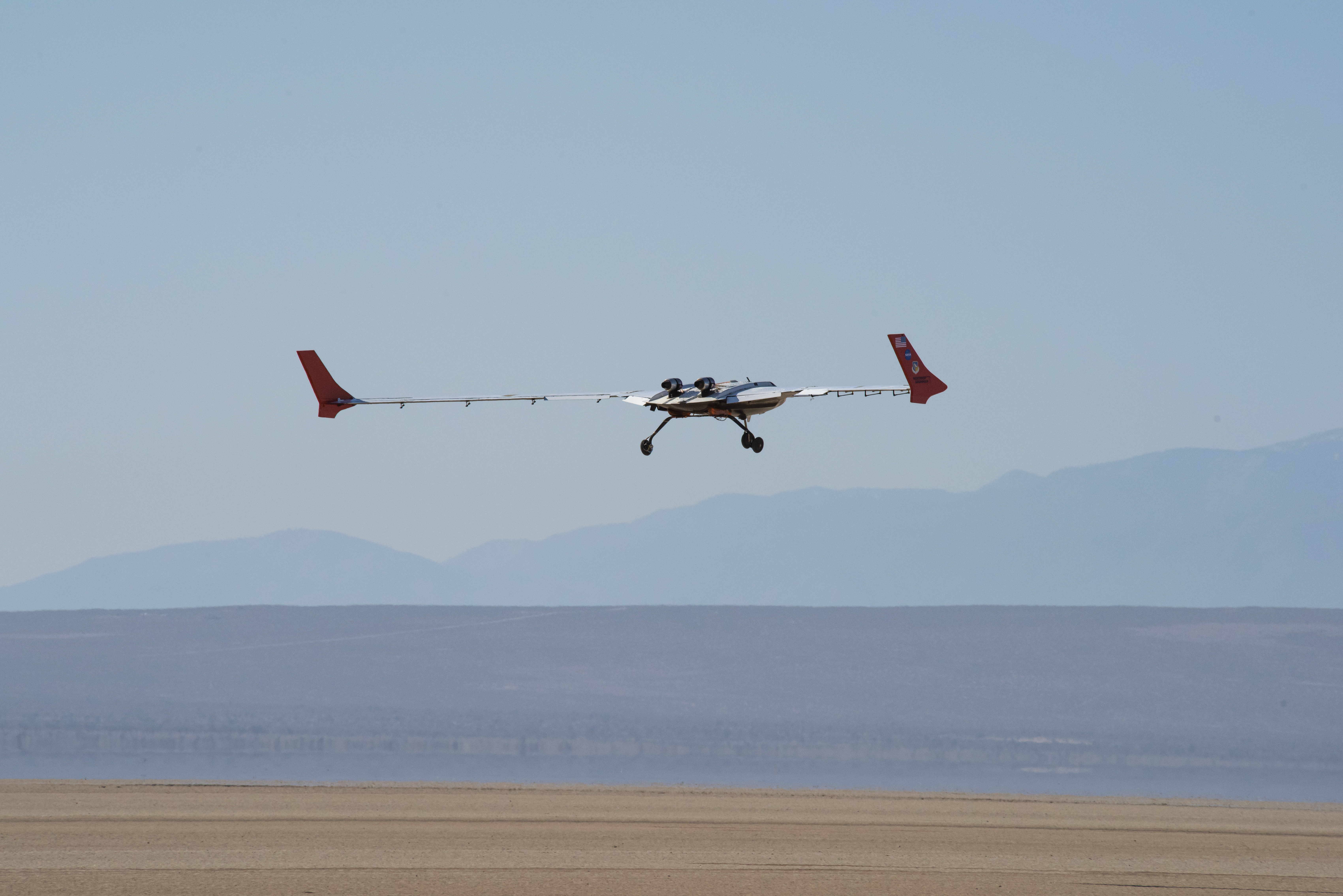 The X-56B remotely piloted aircraft prepares for a landing following the first of a new flight series. The flight was April 19 at NASA’s Armstrong Flight Research Center in Edwards, California, with partner Northrop Grumman.