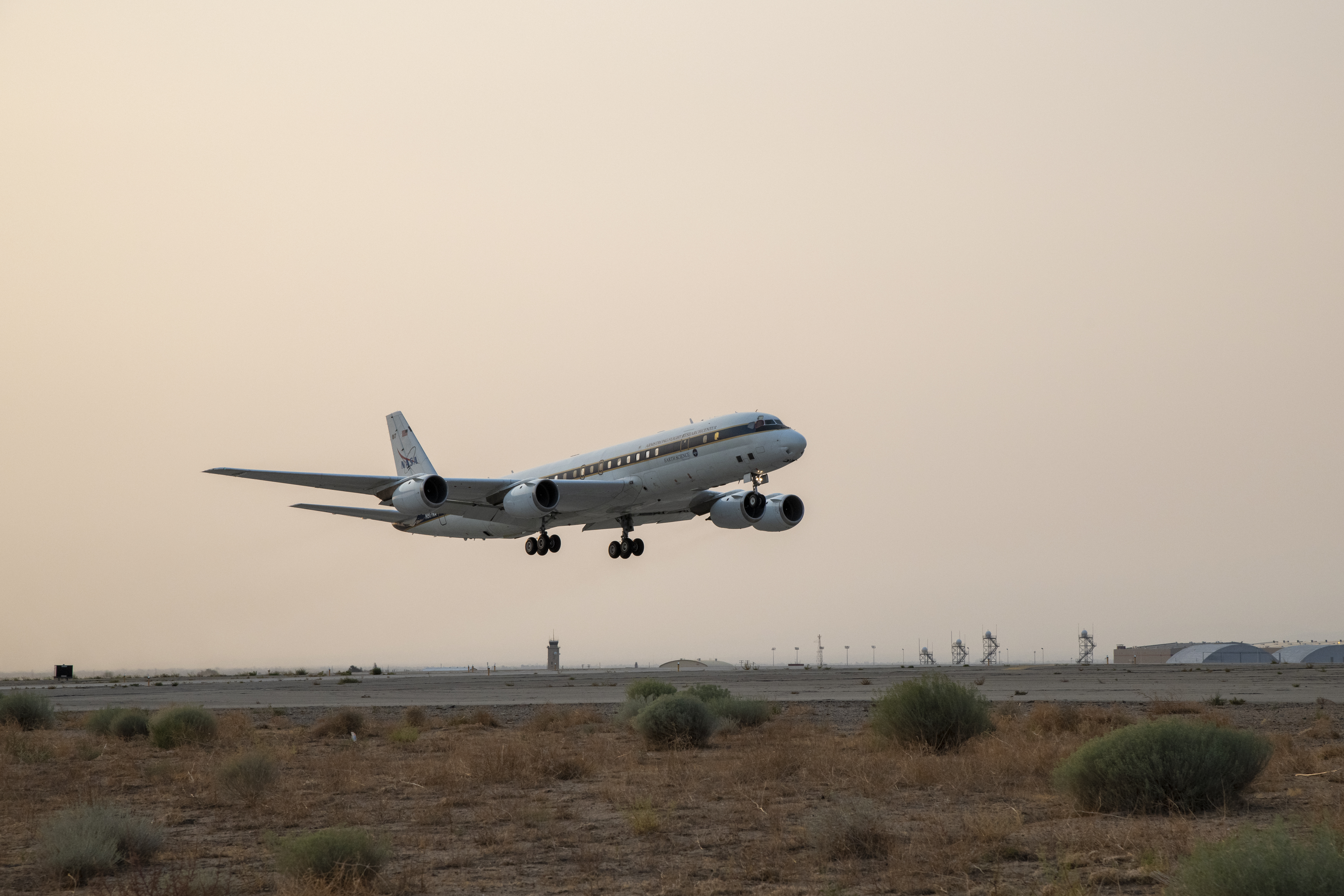 NASA’s DC-8 taking off to St. Croix in support of the Convective Processes Experiment – Aerosols and Winds campaign (CPEX-AW) on Aug 17, 2021.