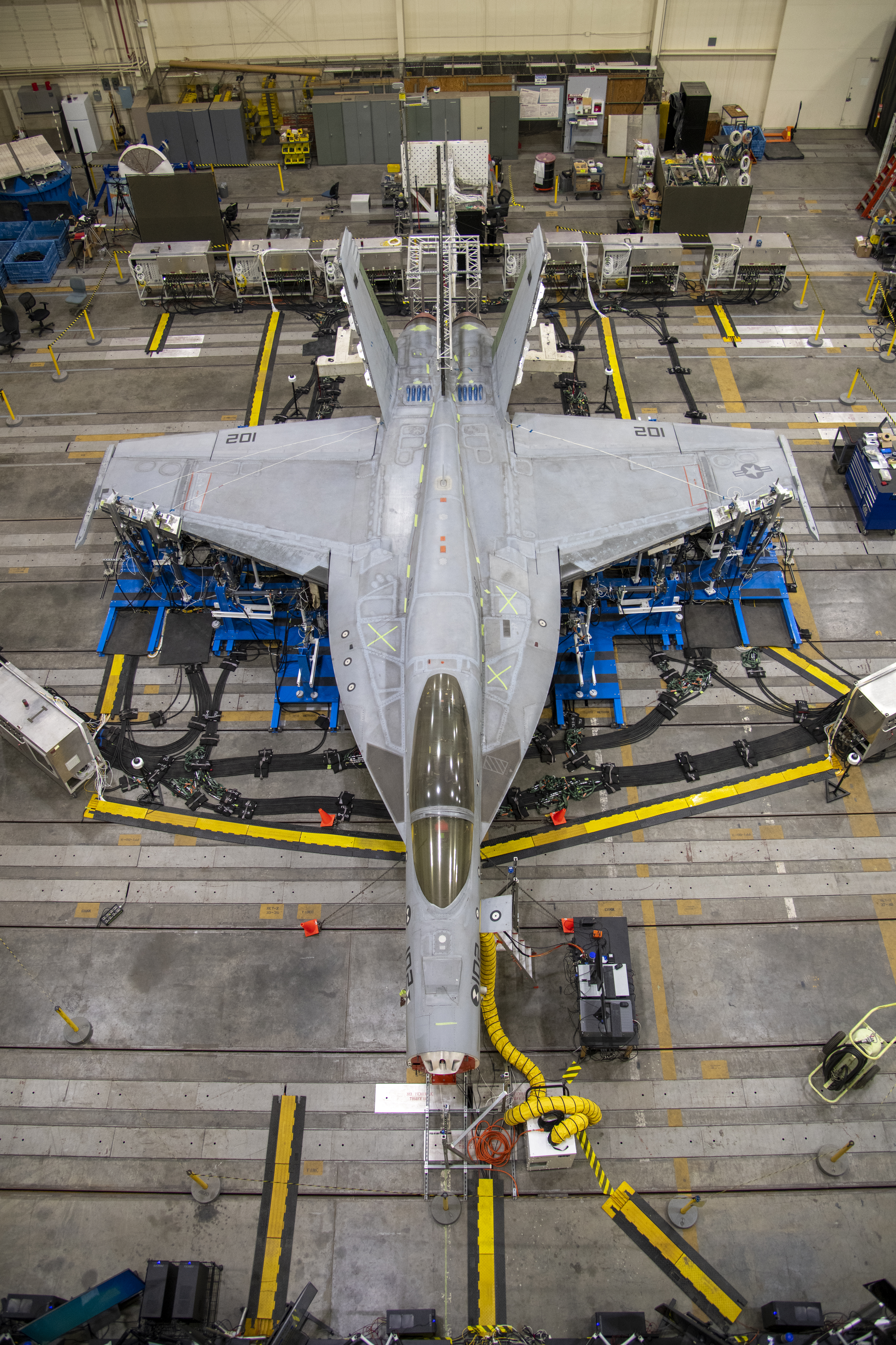 NASA’s Armstrong Flight Research Center Flight Loads Laboratory in Edwards, California, is working on one of its biggest load calibrations tests on an F/A-18E Super Hornet from the Naval Air Systems Command (NAVAIR) in Patuxent River, Maryland. This testing is needed before the aircraft can serve as a test vehicle for determining if it can safely manage maneuvers and proposed upgrades. This is a view of the test setup for the wing loads testing that is set to begin in December 2021.