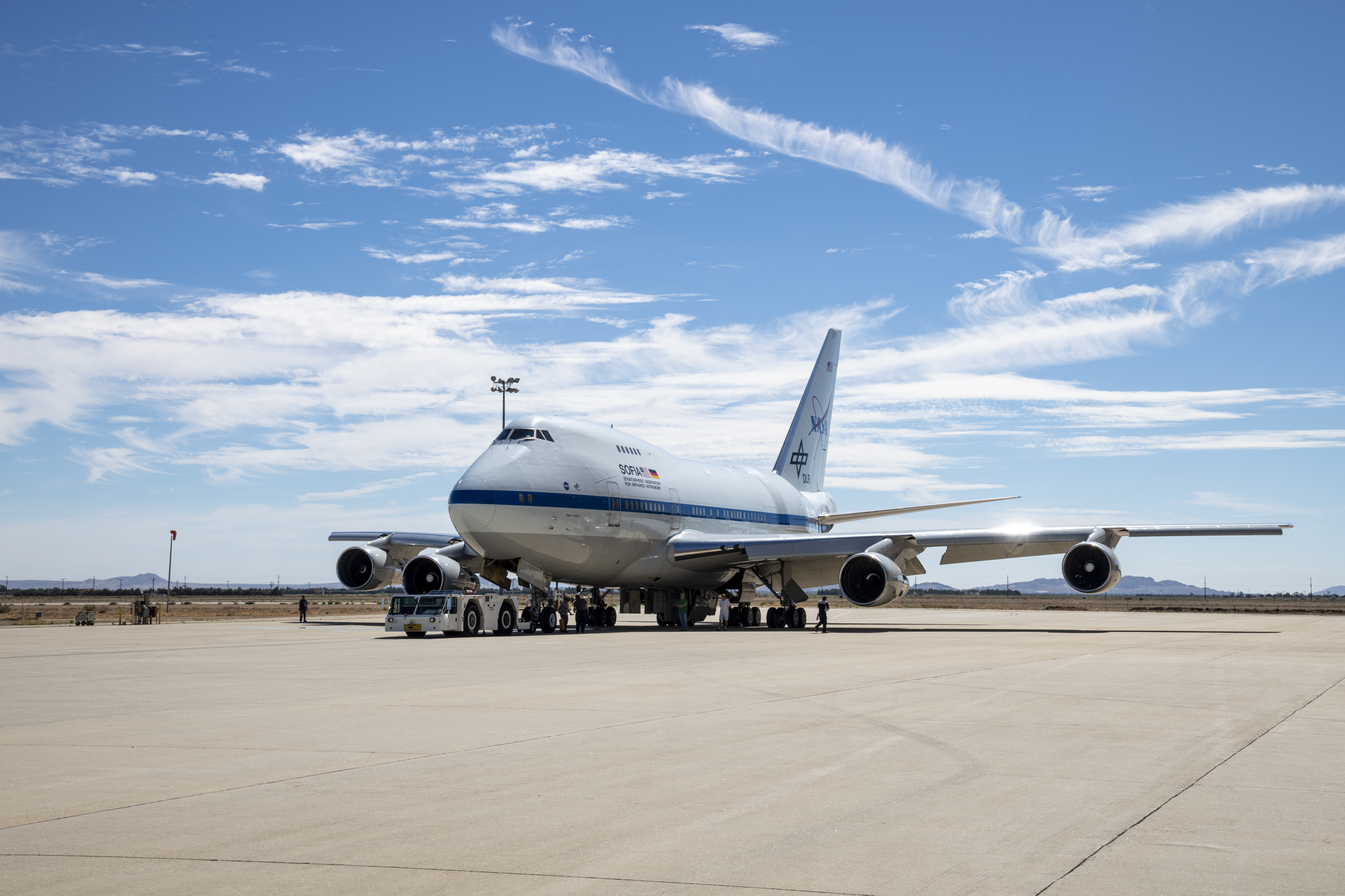The Stratospheric Observatory for Infrared Astronomy (SOFIA) returns to NASA’s Armstrong Flight Research Center Building 703 on Aug. 11 after a productive month of science flights out of Christchurch International Airport in New Zealand.