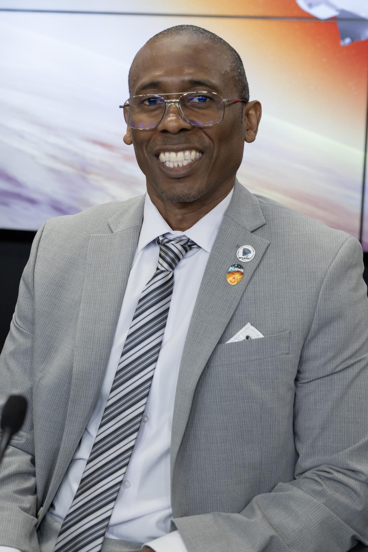Dr. Denton Gibson, launch director, NASA’s Launch Services Program, participates in a prelaunch news conference on Friday, March 7, 2025, to discuss the upcoming launch of NASA’s SPHEREx (Spectro-Photometer for the History of the Universe, Epoch of Reionization and Ices Explorer) observatory and PUNCH (Polarimeter to Unify the Corona and Heliosphere) satellites at Vandenberg Space Force Base in California. SPHEREx will use its telescope to provide an all-sky spectral survey, creating a 3D map of the entire sky to help scientists investigate the origins of our universe. PUNCH will study origins of the Sun’s outflow of material, or the solar wind, capturing continuous 3D images of the Sun’s corona and the solar wind’s journey into the solar system. Liftoff aboard a SpaceX Falcon 9 rocket is targeted for NET 10:10 p.m. EST (7:10 p.m. PST), Saturday, March 8, 2025, at Space Launch Complex 4 East from Vandenberg Space Force Base in California.