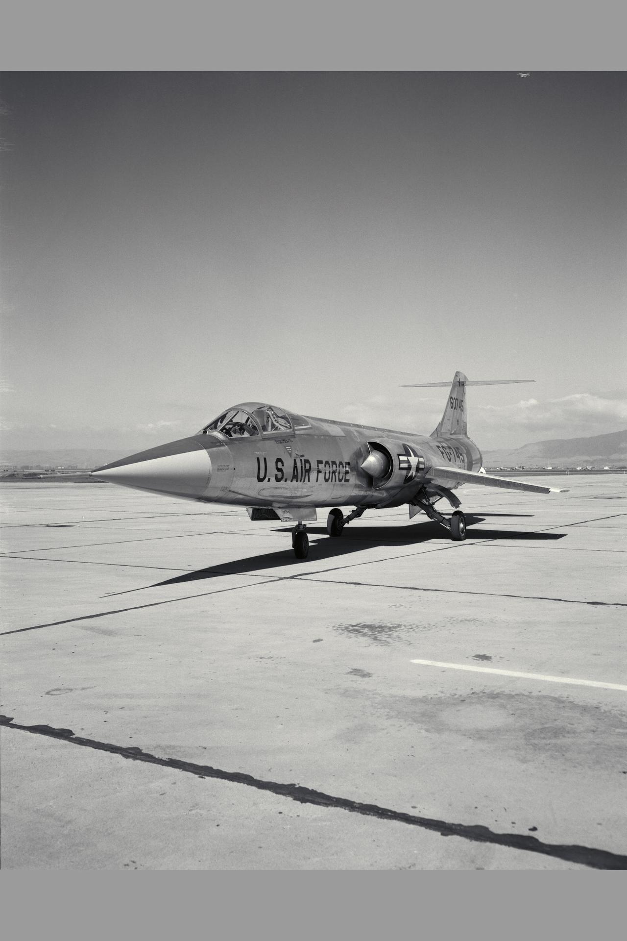 Lockheed JF-104A (AF56-745A Tail No. 60745) Starfighter airplane piloted by Fred Drinkwater conducted flight testing that demonstrated steep approaches that were ultimately used by the space shuttle. Steep descent testing, including power-off landing approaches and demonstration of minimum lift-to-drag ratio (L/D) landings came out of the interest in the use of low L/D lifting bodies for recovery to landing from space. Note: Used in publication in Flight Research at Ames; 57 Years of Development and Validation of Aeronautical Technology NASA SP-1998-3300 fig 93