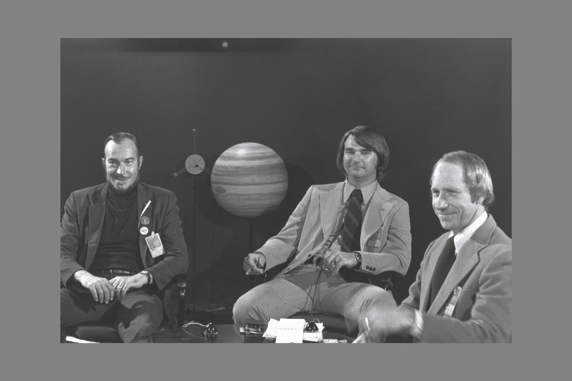 Pioneer 10 and 11 Missions Jupiter encounters - Activities at Ames Research Center December 1973 and December 1974 - As a memento of the highly successful Pioneer 10 and 11 missions to Jupiter, this collection of photographs represents a sampling of those taken at Ames Research Center during the Jupiter encounter periods in December 1973 and December 1974. The captions for these photographs are meant to suggest the lighter side of the intense activities that took place during these periods. I would like to express my gratitude to all participants in the Pioneer 10/11 program for their teamwork in accomplishing the scientific and technical objectives of the Pioneer 10 and 11 missions to Jupiter. (signed) Charles F. Hall - Manager, Pioneer Project L-R: Dr. John H Wolfe, Robert R Nunamaker, Alfred M. Worden