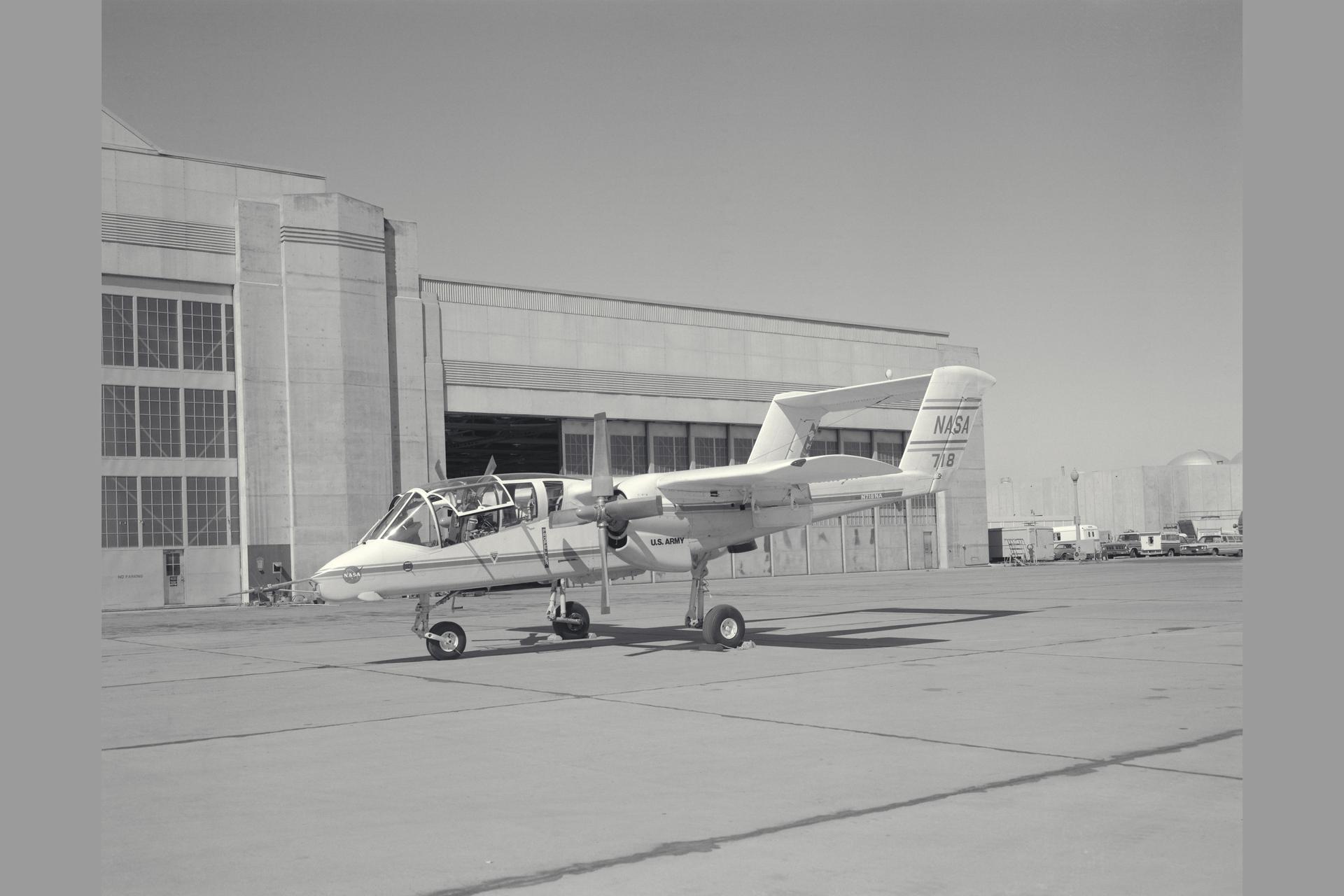 OV-10A (NASA-718) on NASA Ames Ramp: pilot Bob Innis