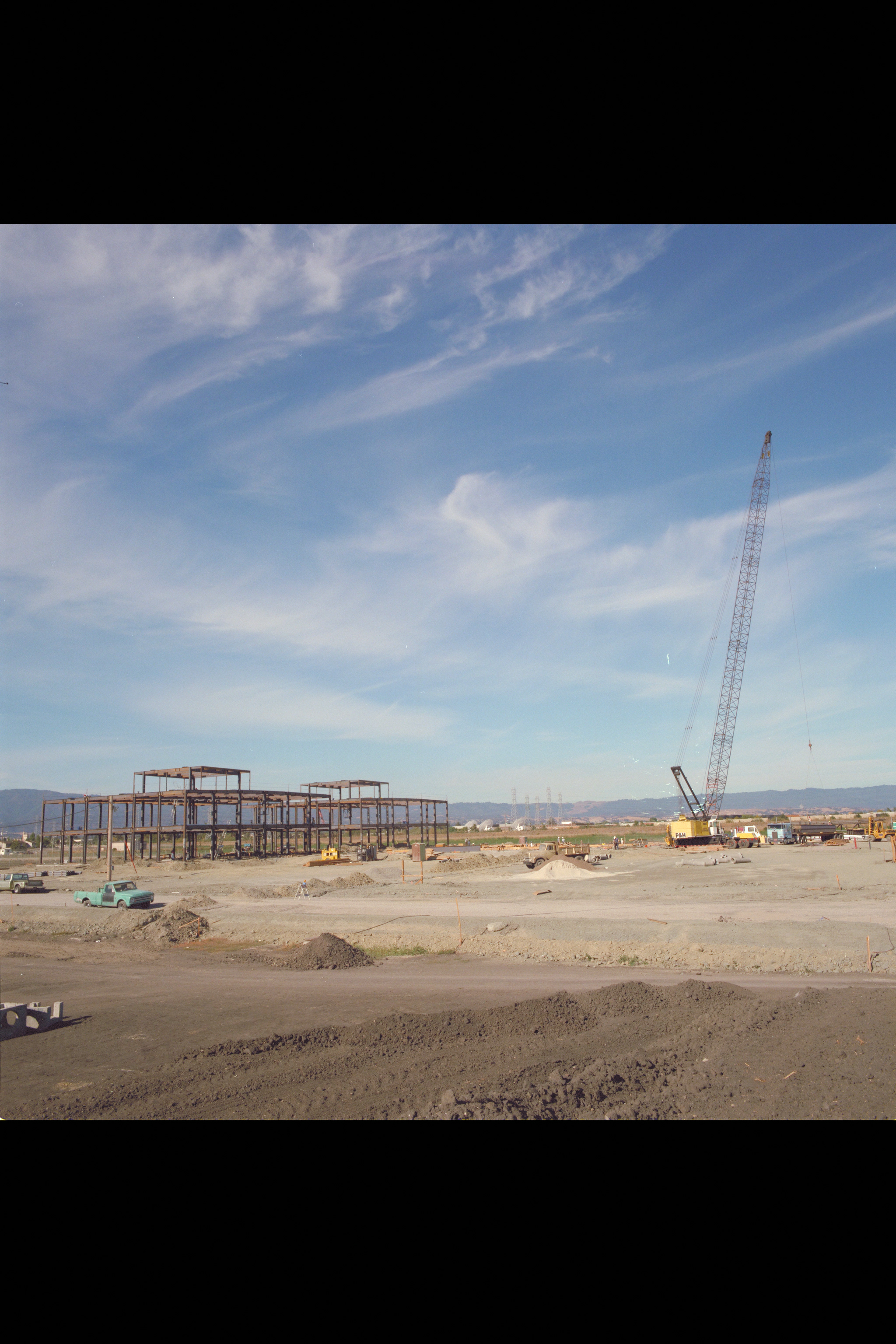 N-258 NAS (Numerical Aerodynamic Simualtion) Facility, aerials of (pre) construction site, Framing